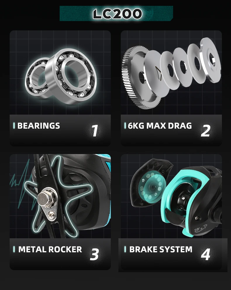 BILLINGS-carrete de pesca Baitcasting serie LC, relación de engranaje 7,2: 1, carrete de pesca de arrastre máximo de 13,2 lb, adecuado para fresh wa