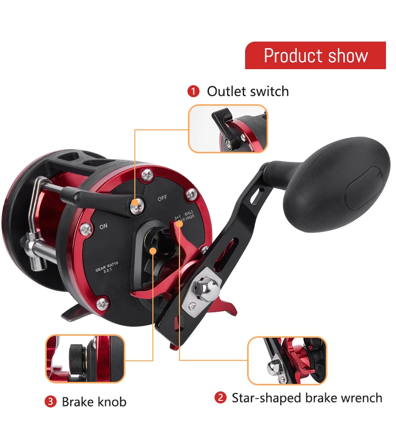 Producto muy bueno y hermoso: mecánica impecable, diseño precioso, bien diseñado y, por fin, un carrete de trolling real para uso por la mano izquierda.