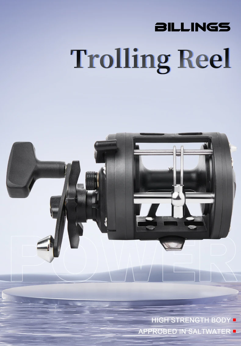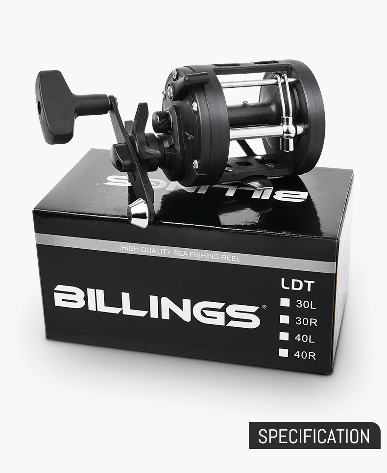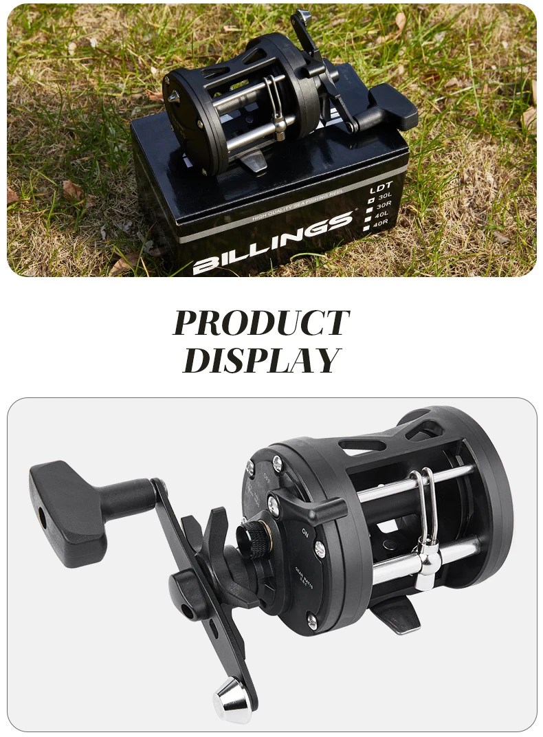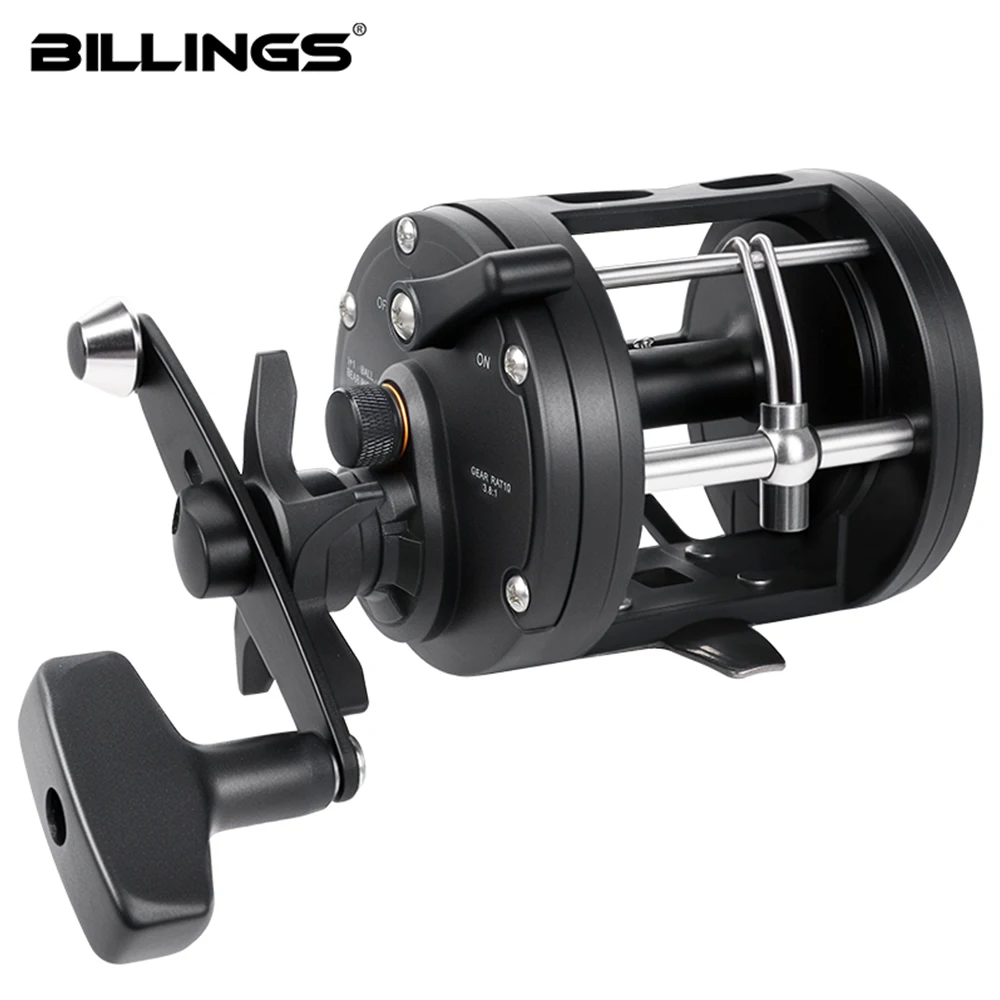 BILLINGS carrete de tambor de curricán de agua salada carrete de pesca de mar de fundición relación de engranaje 3,8: 1 carrete de Baitcasting redondo arrastre máximo de 15KG