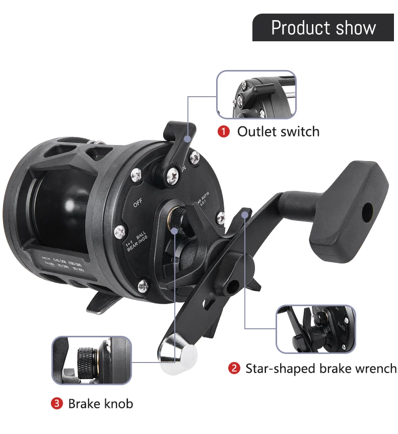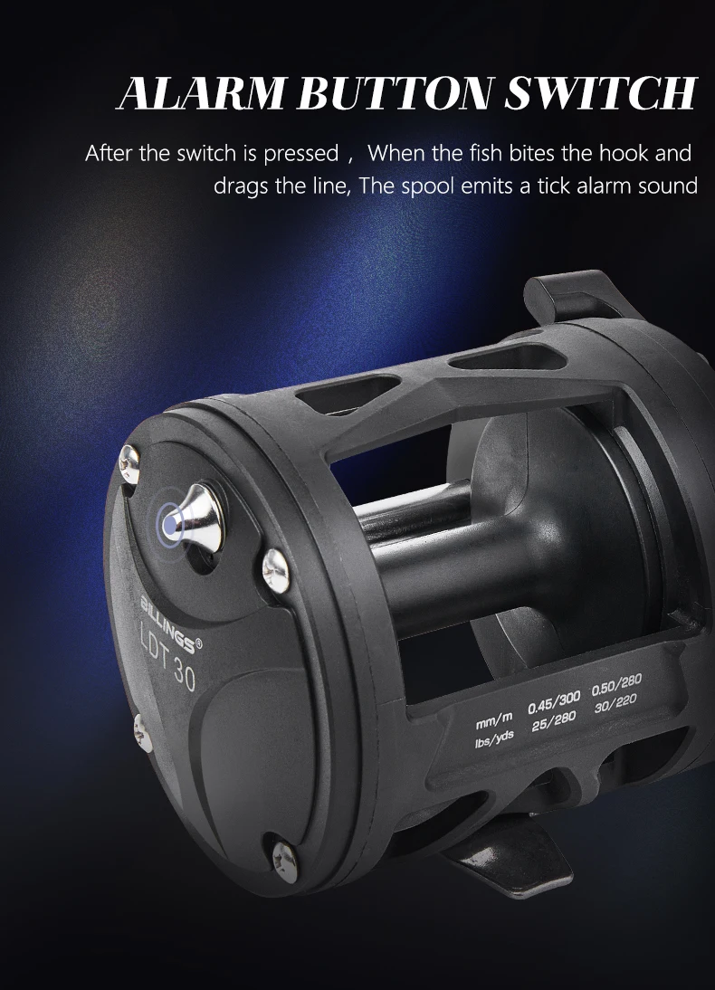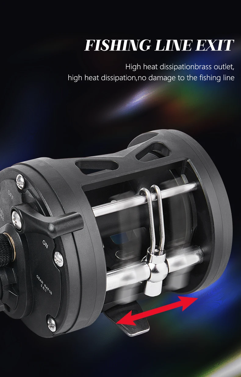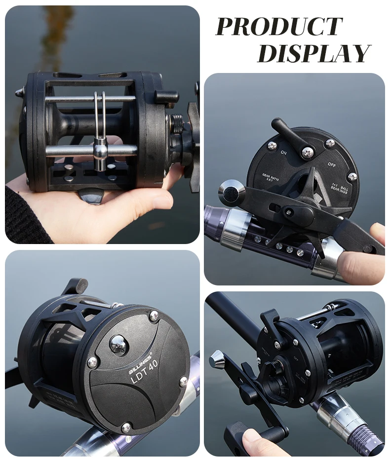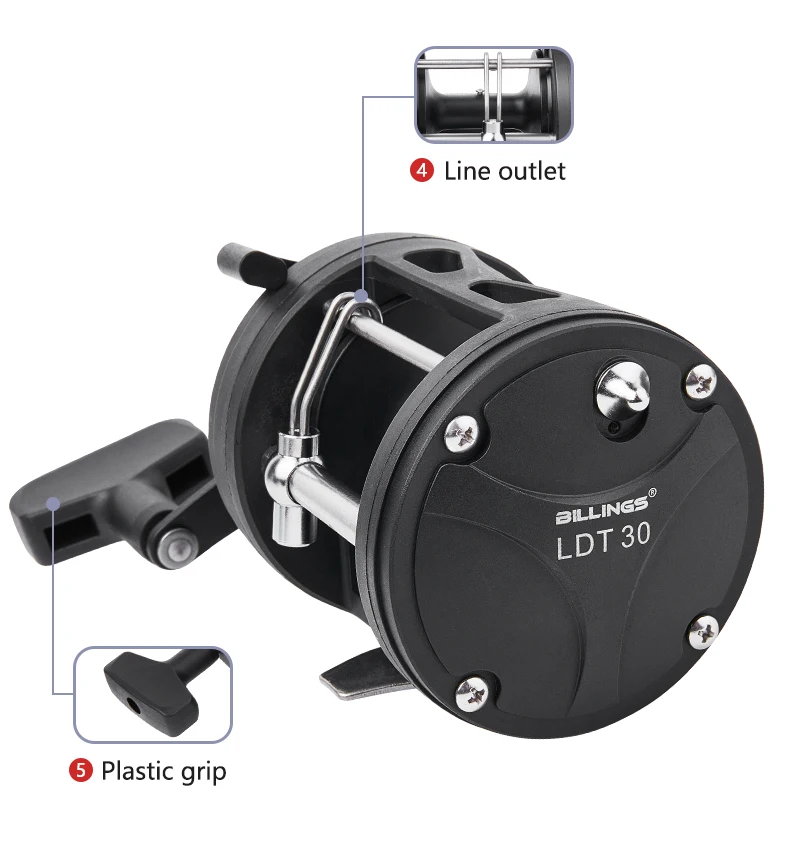 BILLINGS carrete de tambor de curricán de agua salada carrete de pesca de mar de fundición relación de engranaje 3,8: 1 carrete de Baitcasting redondo arrastre máximo de 15KG