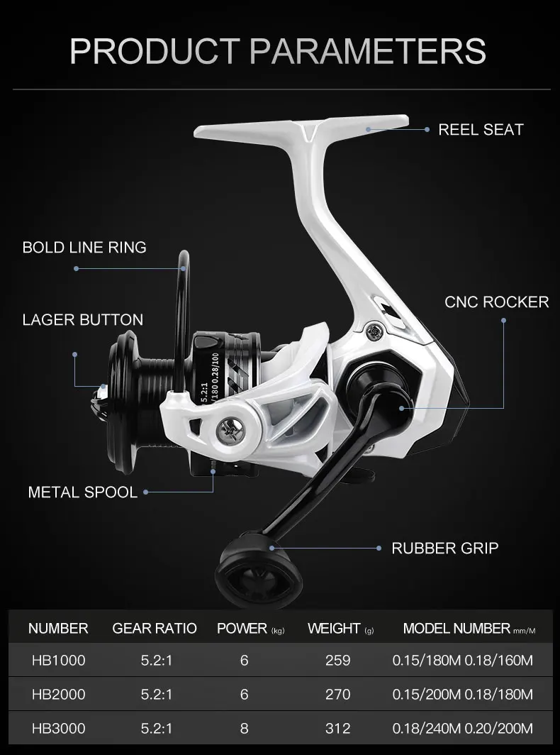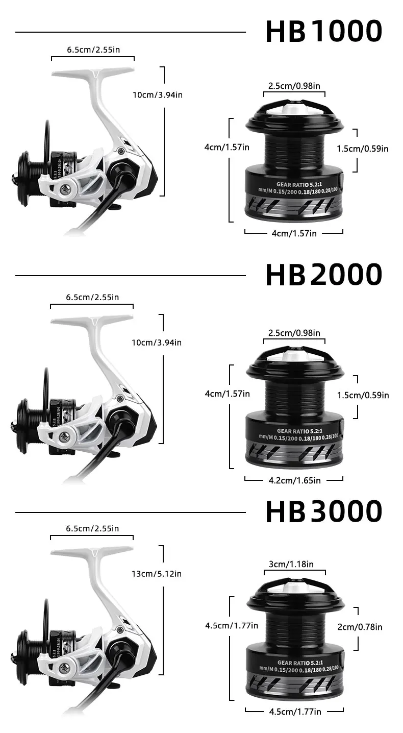 BILLINGS HB serie 1000-3000, relación de transmisión 5,2: 1, arrastre máximo 17,63, carrete de Metal, carrete de pesca giratorio, para agua dulce