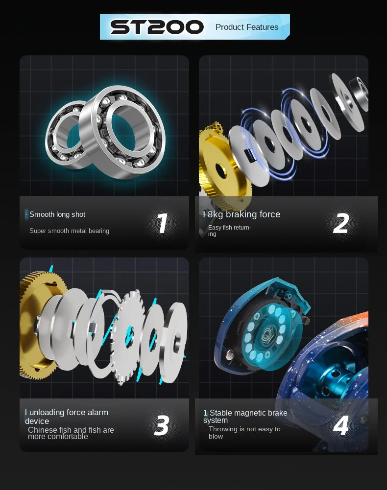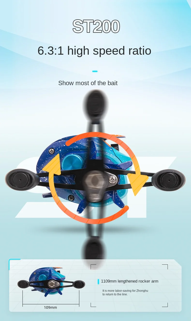 BILLINGS serie ST, relación de transmisión 6,3: 1, arrastre máximo de 18lb, carrete de Baitcasting, para agua dulce y salada