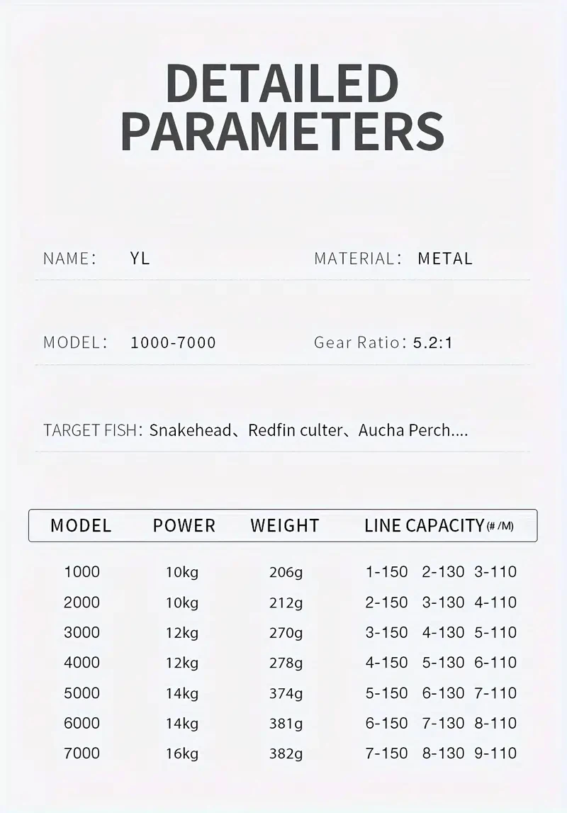 BILLINGS YL serie 1000 ~ 7000, relación de engranaje 5,2: 1, arrastre máximo de 35LB, carrete de Metal CNC, carrete de pesca giratorio, para agua dulce y salada