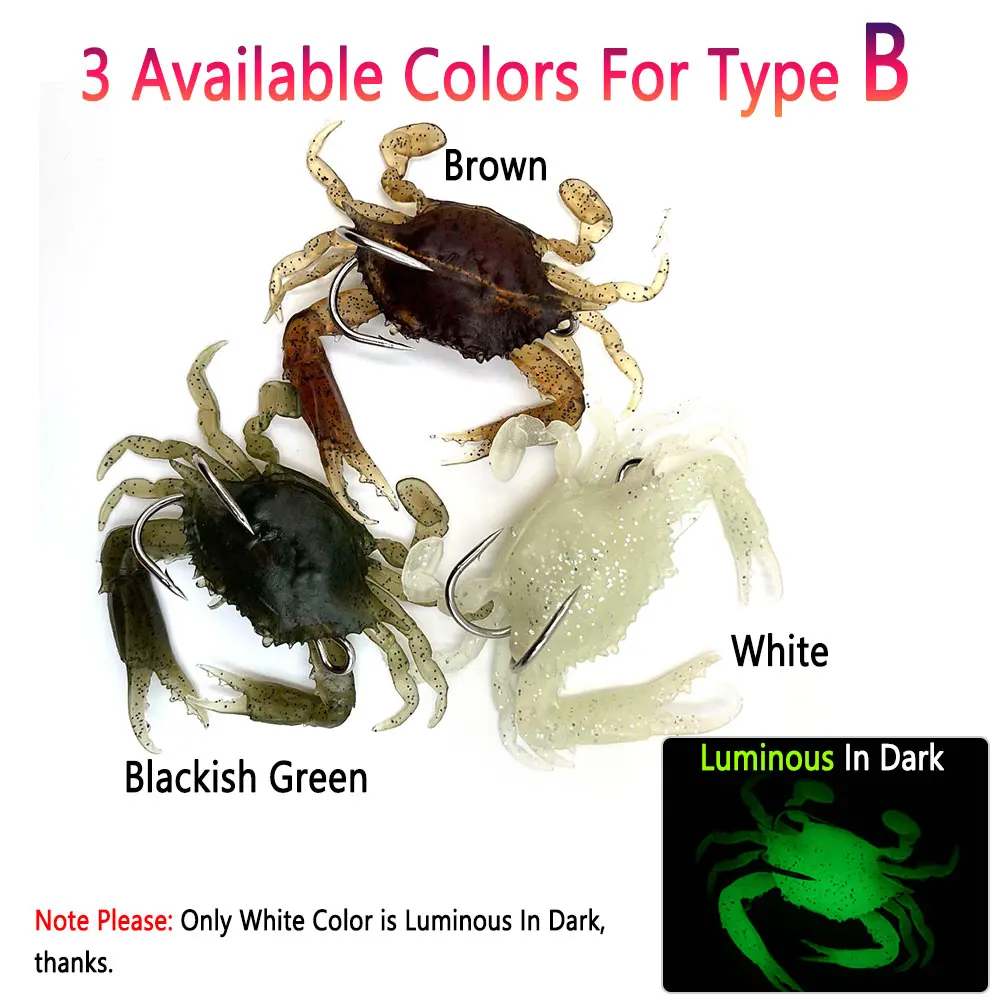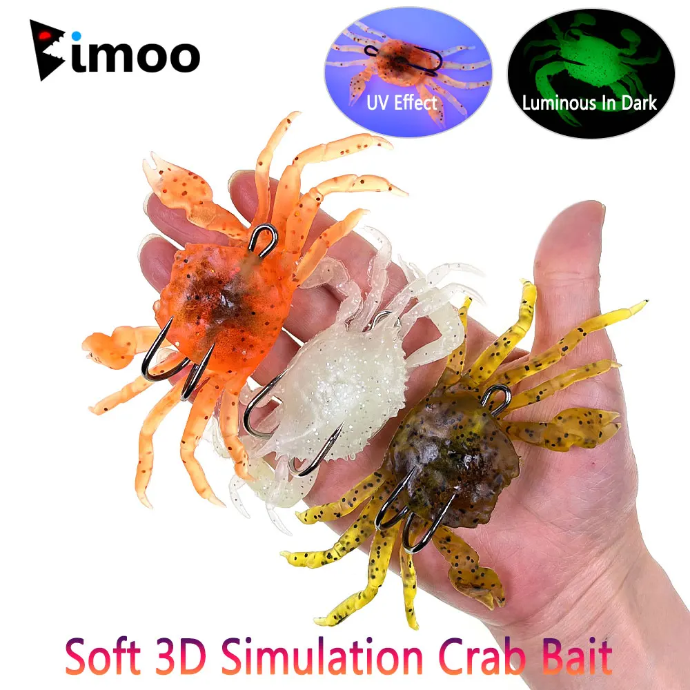 Bimoo, 1/3 Uds., cebo de cangrejo de simulación 3D suave, cebo Artificial suave, señuelo de cangrejo, lubina, Wrasse, bacalao, pesca en el mar, aparejos de doble gancho