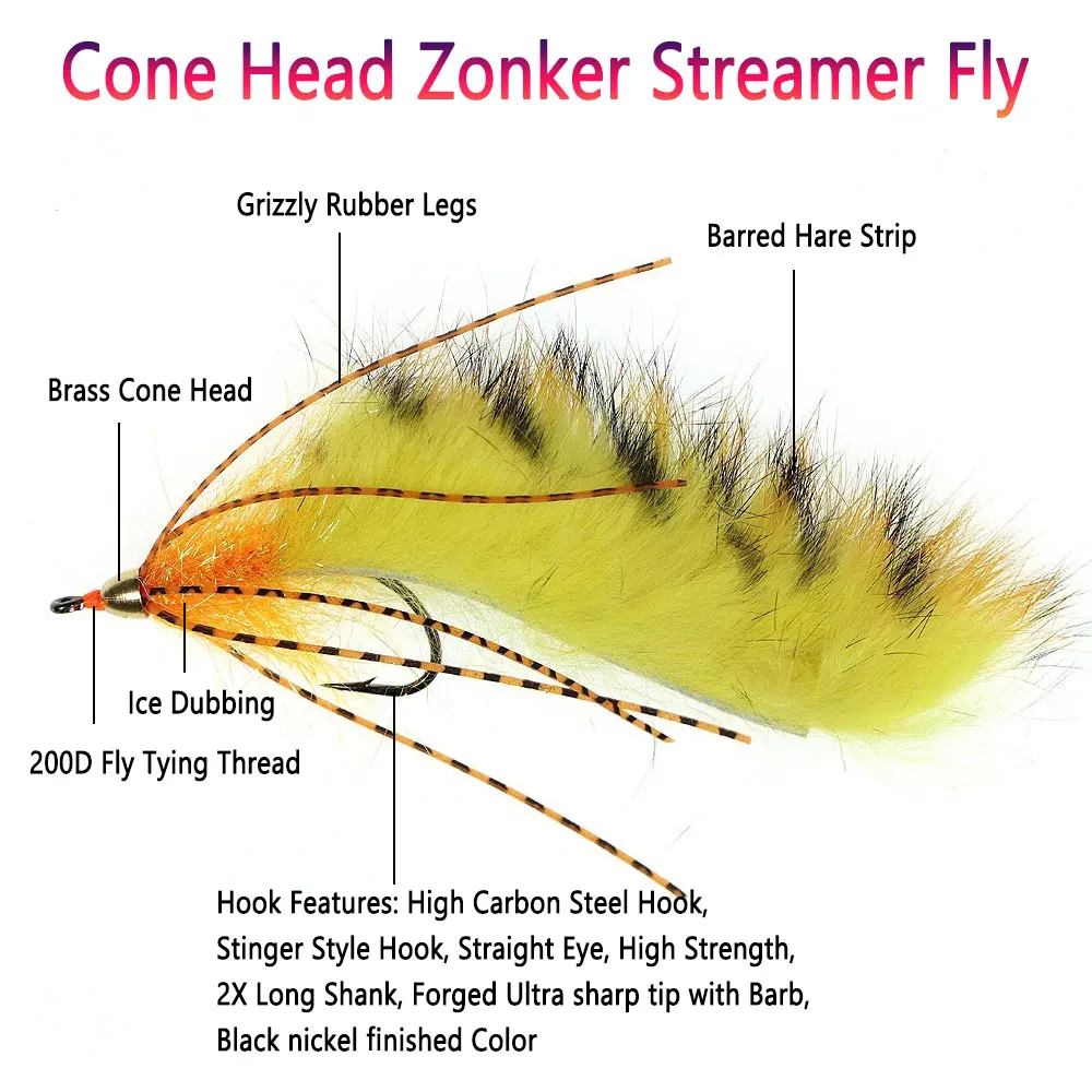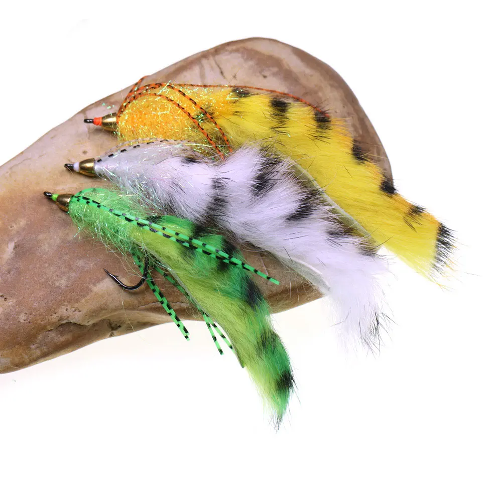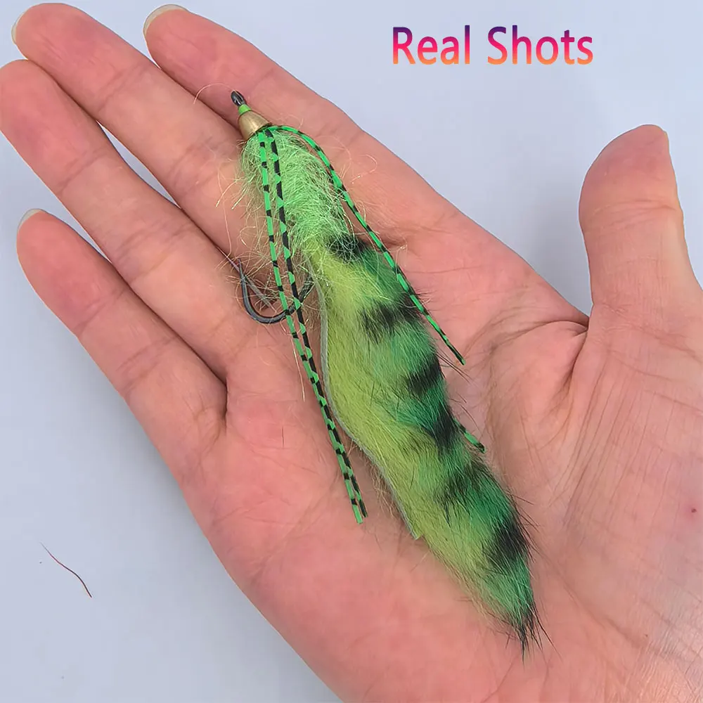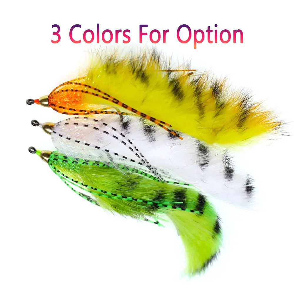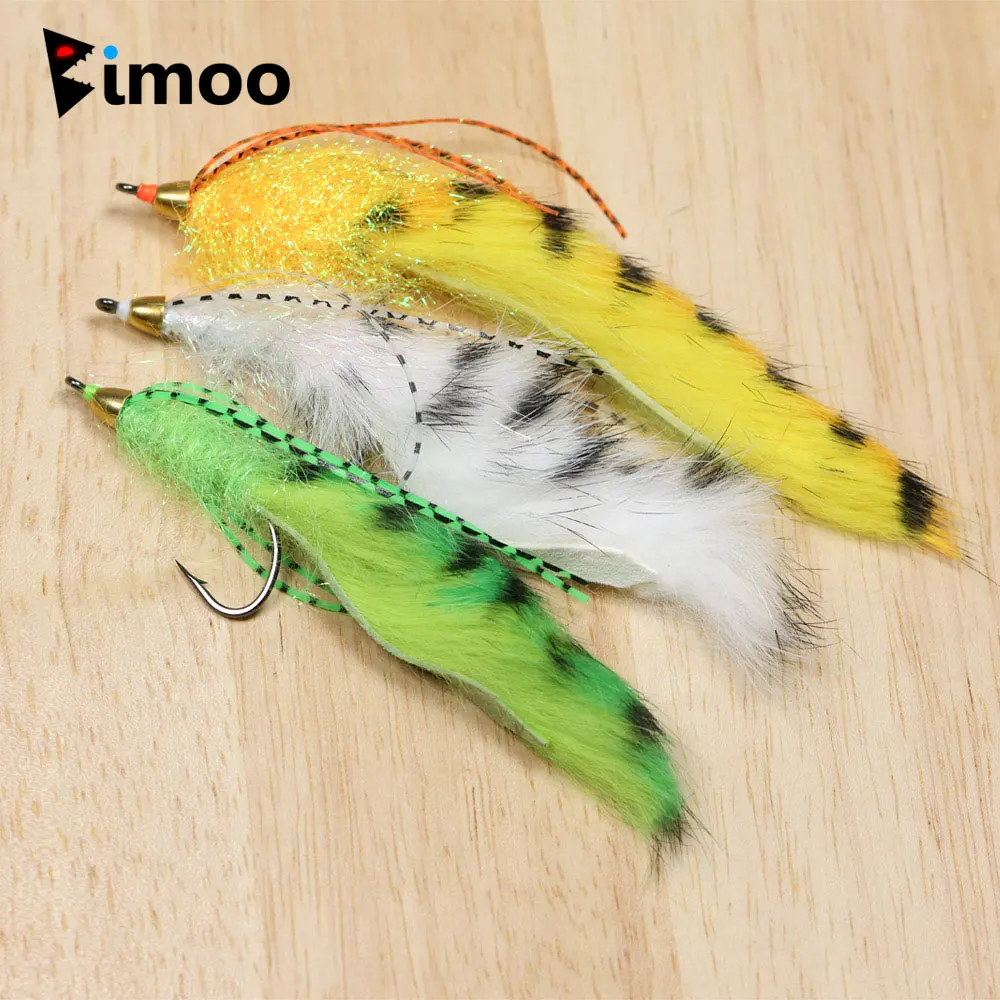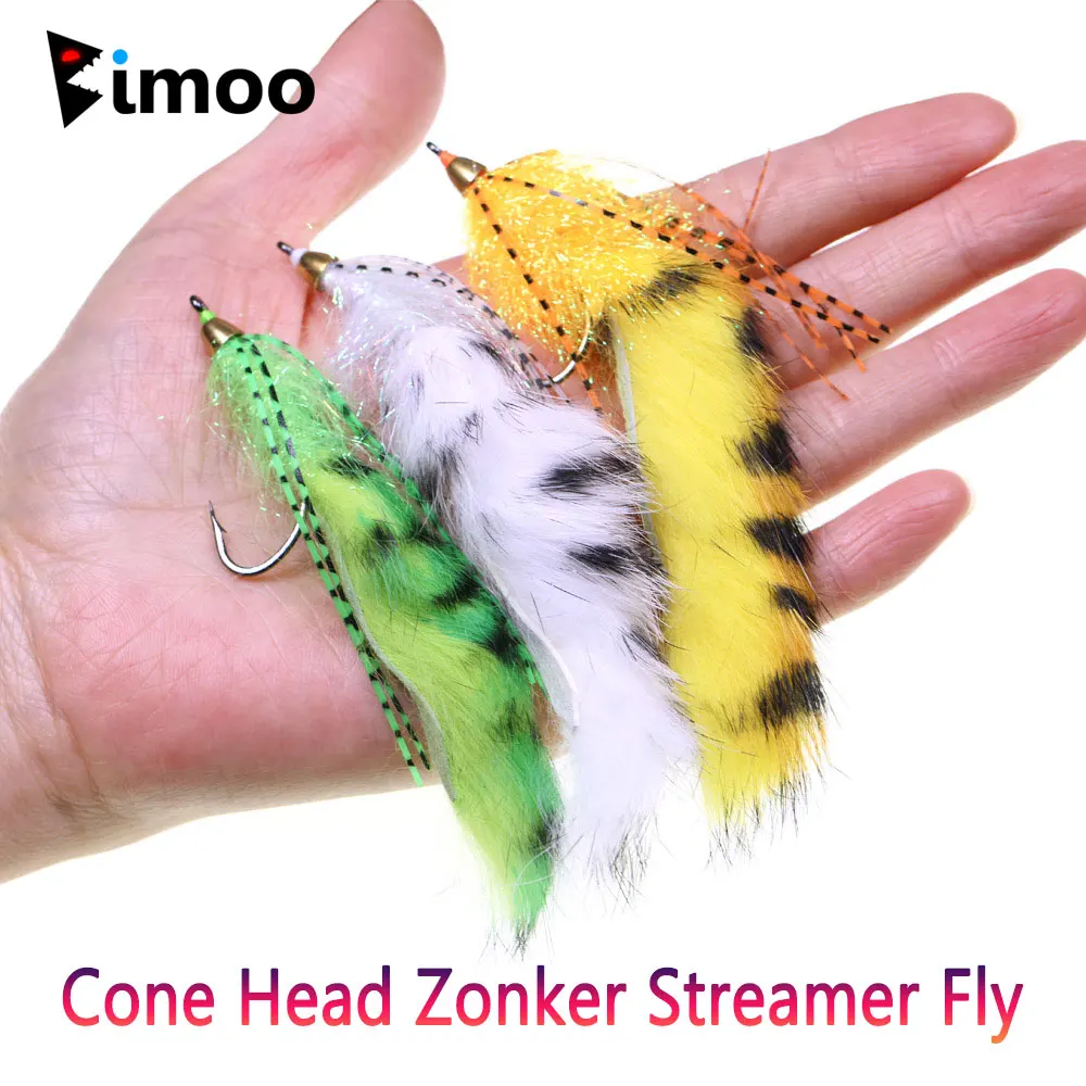 Bimoo 1-3 uds techo de latón Zonker Streamer Fly Hare Barred Strip Baitfish Streamer lubina Lucio trucha Señuelos de pesca de agua salada