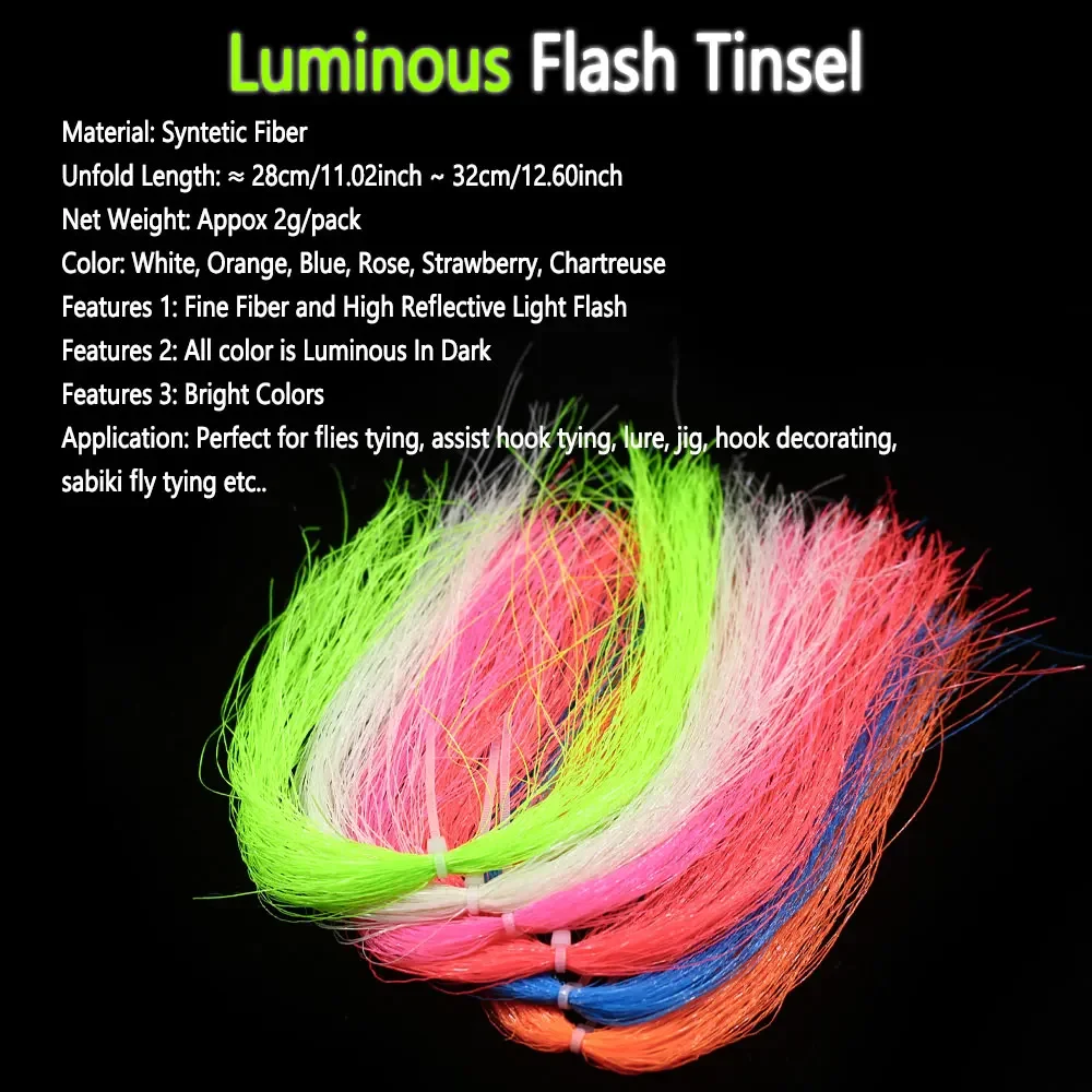 Bimoo 1 paquete ~ 6 paquetes de brindes de destello luminosos de cristal para atar ninfa Streamer Jig Hook señuelo Sabiki aparejos de fabricación
