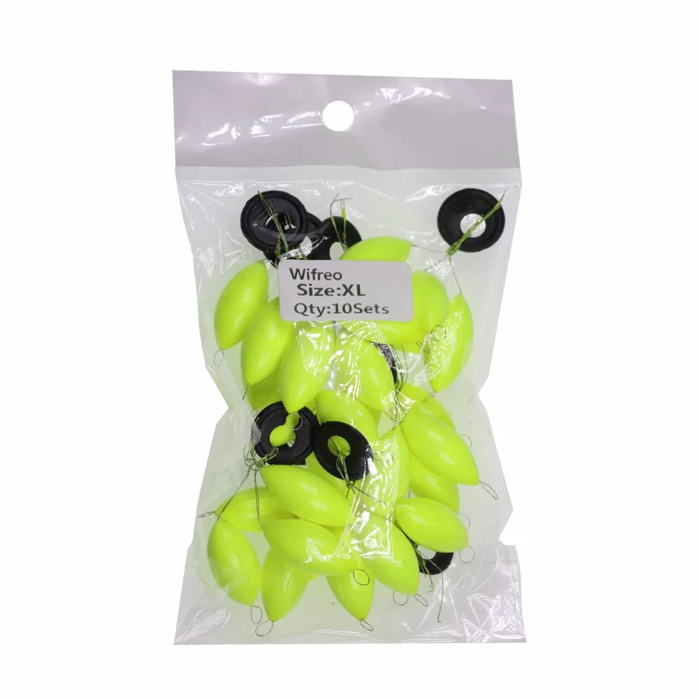 Bimoo 1 bolsa=10 juegos Fluo amarillo rojo-amarillo rojo ovalado aparejo de pesca cuentas flotantes posicionamiento aparejos de pesca accesorios S M L XL
