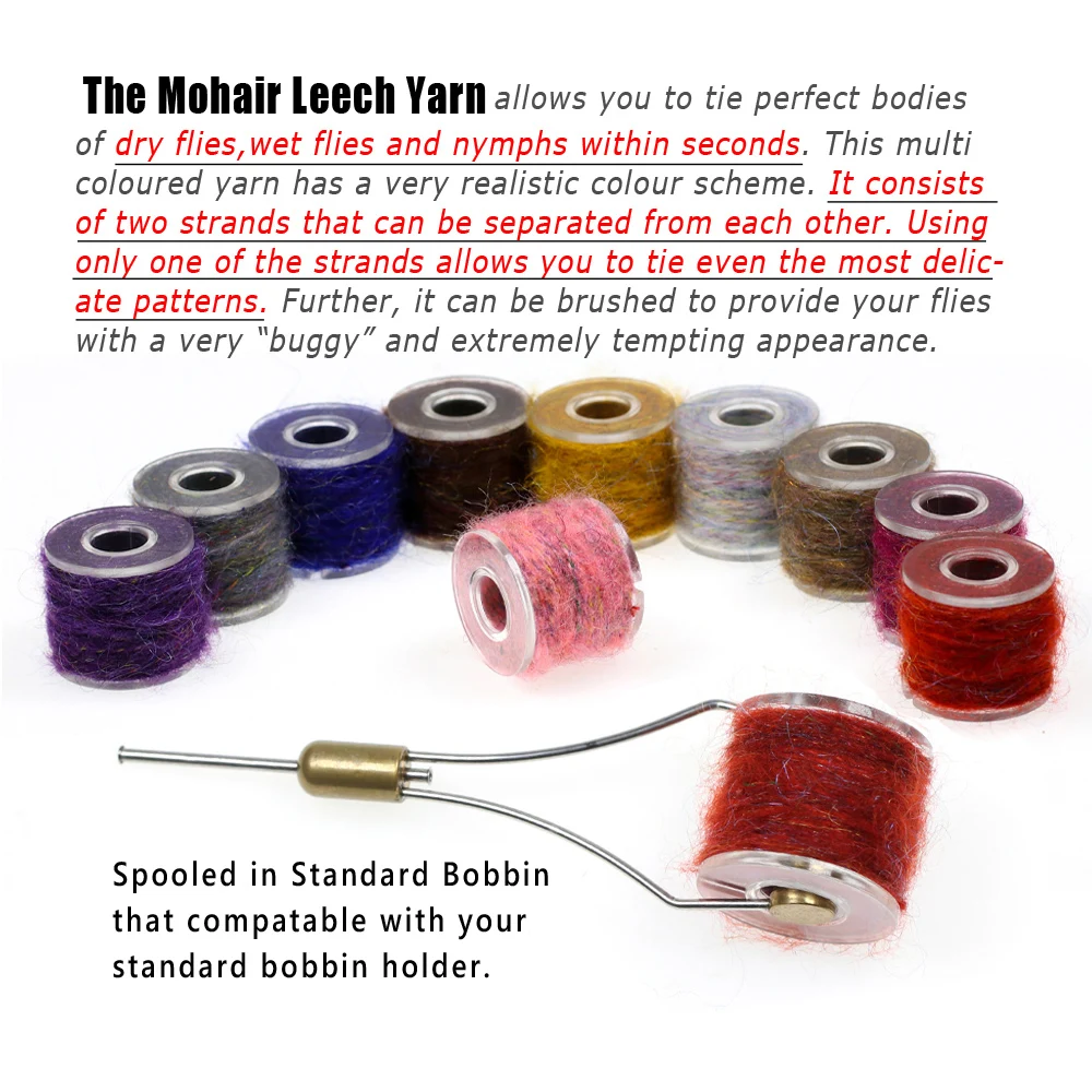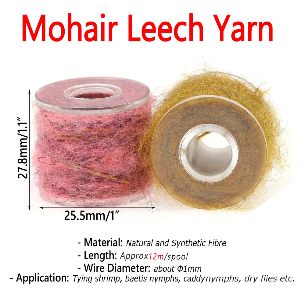 ---El hilo de leech Mohair es una mezcla de materiales naturales y sintéticos que crean un cordón moteado que se asemeja al doblar, pero con la facilidad de simplemente envolver el cordón.Tiene los múltiples colores que se encuentran en insectos e invertebrados, ya sea que estés atando camarones, ninfas de baetis o ninfas de caddis, no importa.¡Te ayudará a crear un cuerpo de mosca de aspecto natural!