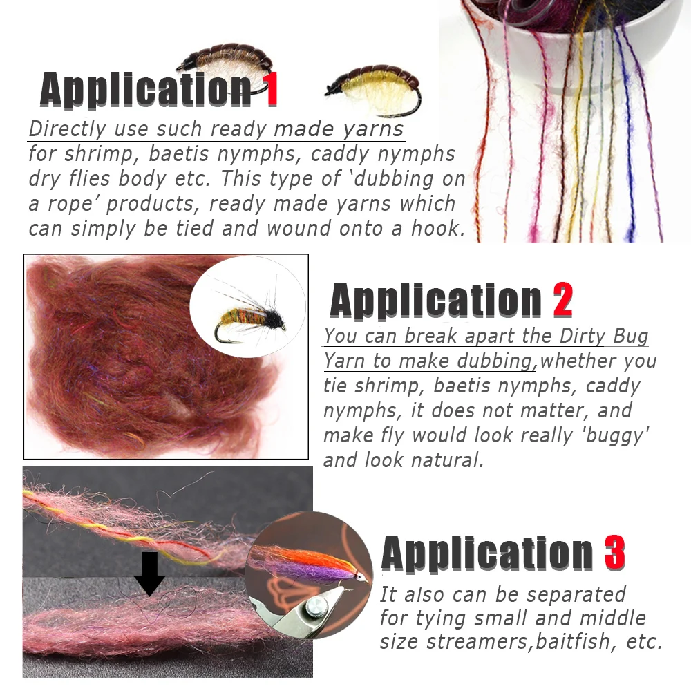 Bimoo 1 carrete para atar moscas, insectos sucios, hilo de haya, hilo de mohair, cuerda de doblaje, tejido de haya, ninfa grande, gusano, atado de serpentinas corporales