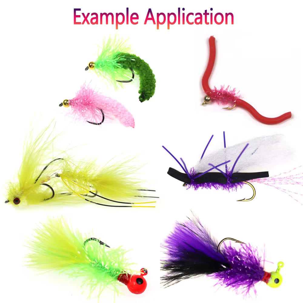 Aplicación: perfecto para atar ninfas, moscas de serpentina, moscas de agua salada, señuelos de marabú, mini moscas de pesca en hielo, etc.