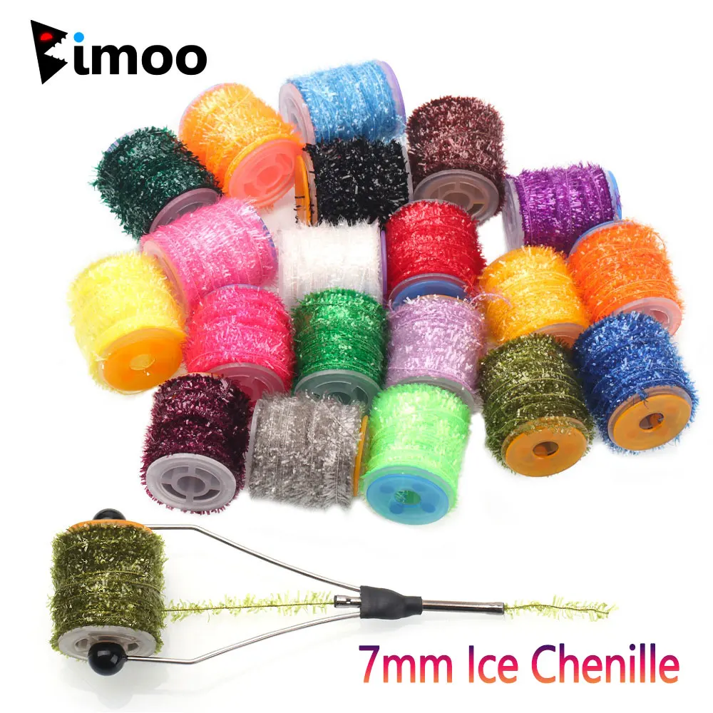 Bimoo 1 carrete atado de moscas de hielo Chenille Material para atar ninfas Streamer Fly Marabou Jig Ice Jig moscas mar pesca lubina Lucio señuelos