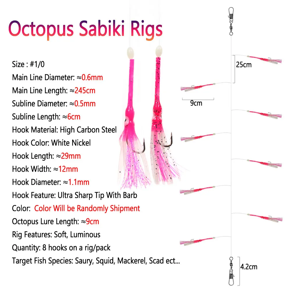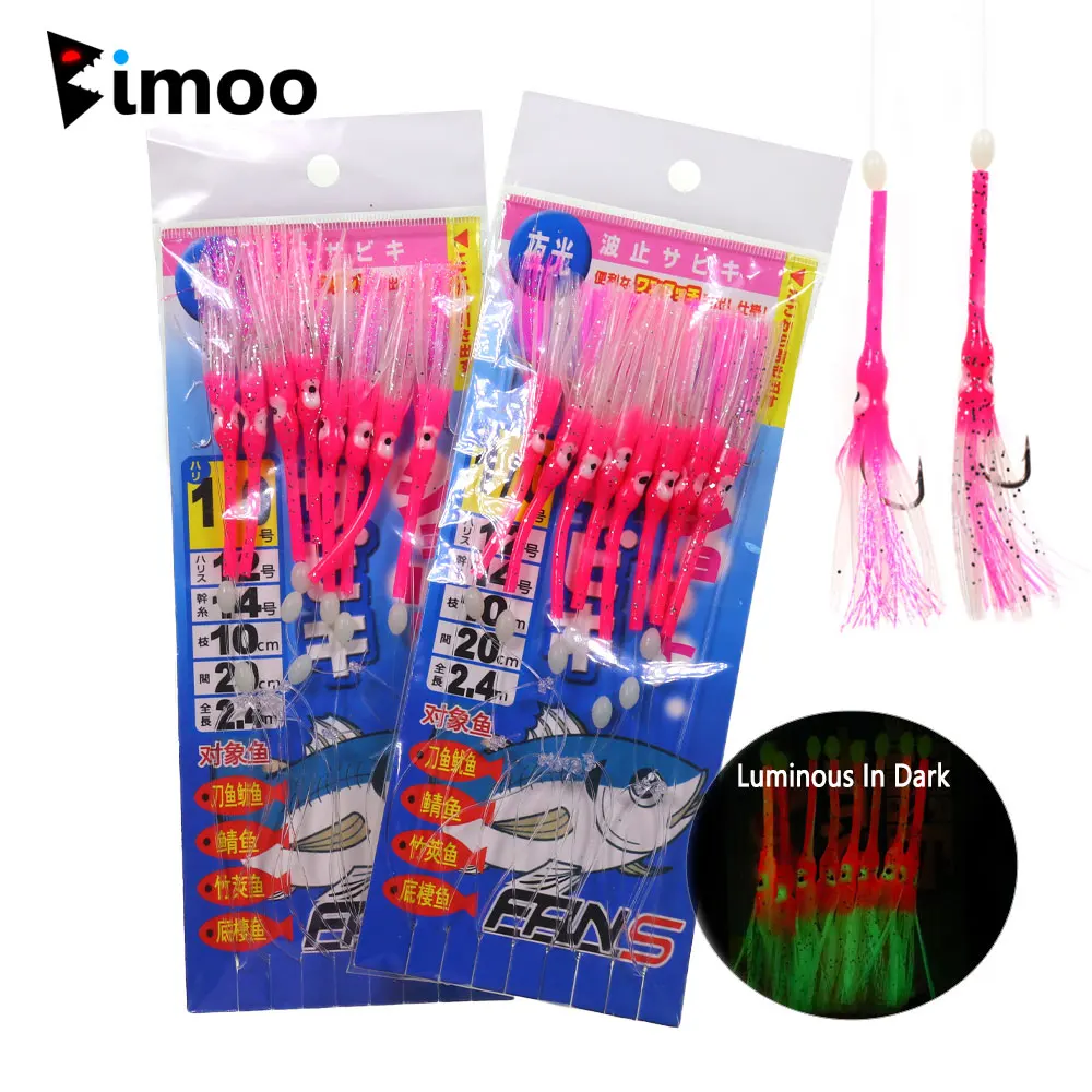 Bimoo 8 anzuelos/paquete Polpo Sabiki aparejos Flashabou oropel ganchos de cuerda señuelos Saury Calamar caballa aparejos de pesca de agua salada Pesca