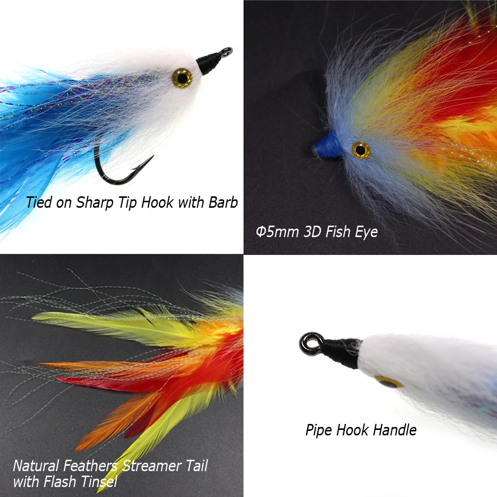 Bimoo 1/5PCS#2/0 nueva trucha Steelhead salmón Lucio Streamer mosca para agua de mar moscas de pesca señuelo conehead tubo moscas gran serpentina