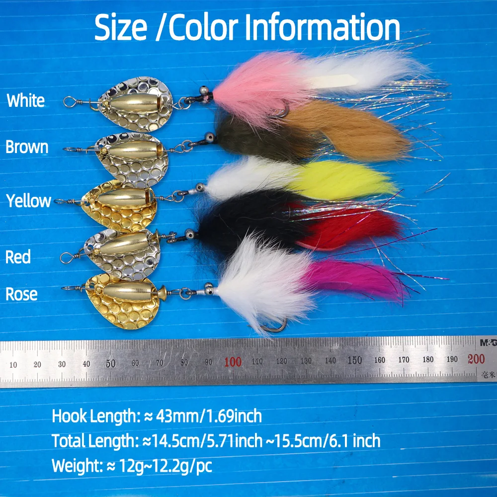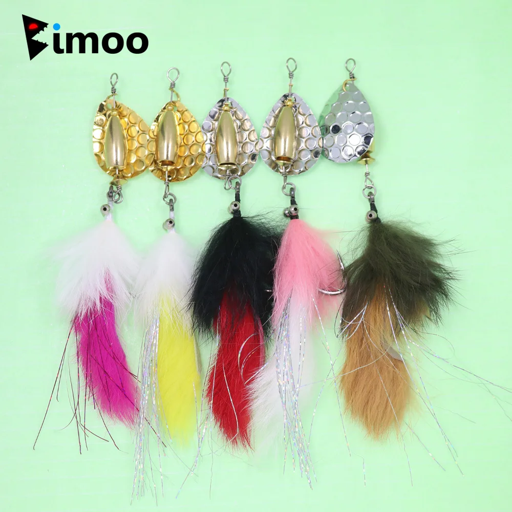 Bimoo 1 pieza/5 piezas mezcla cadena de cuentas ojo Hare Zonker Streamer con plato de latón cuchara señuelo cebo conjunto señuelo cebo lentejuelas Stinger anzuelo Spinner señuelo de pesca