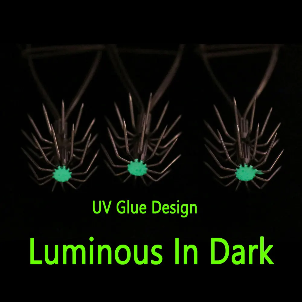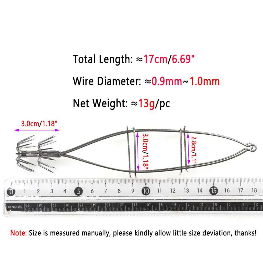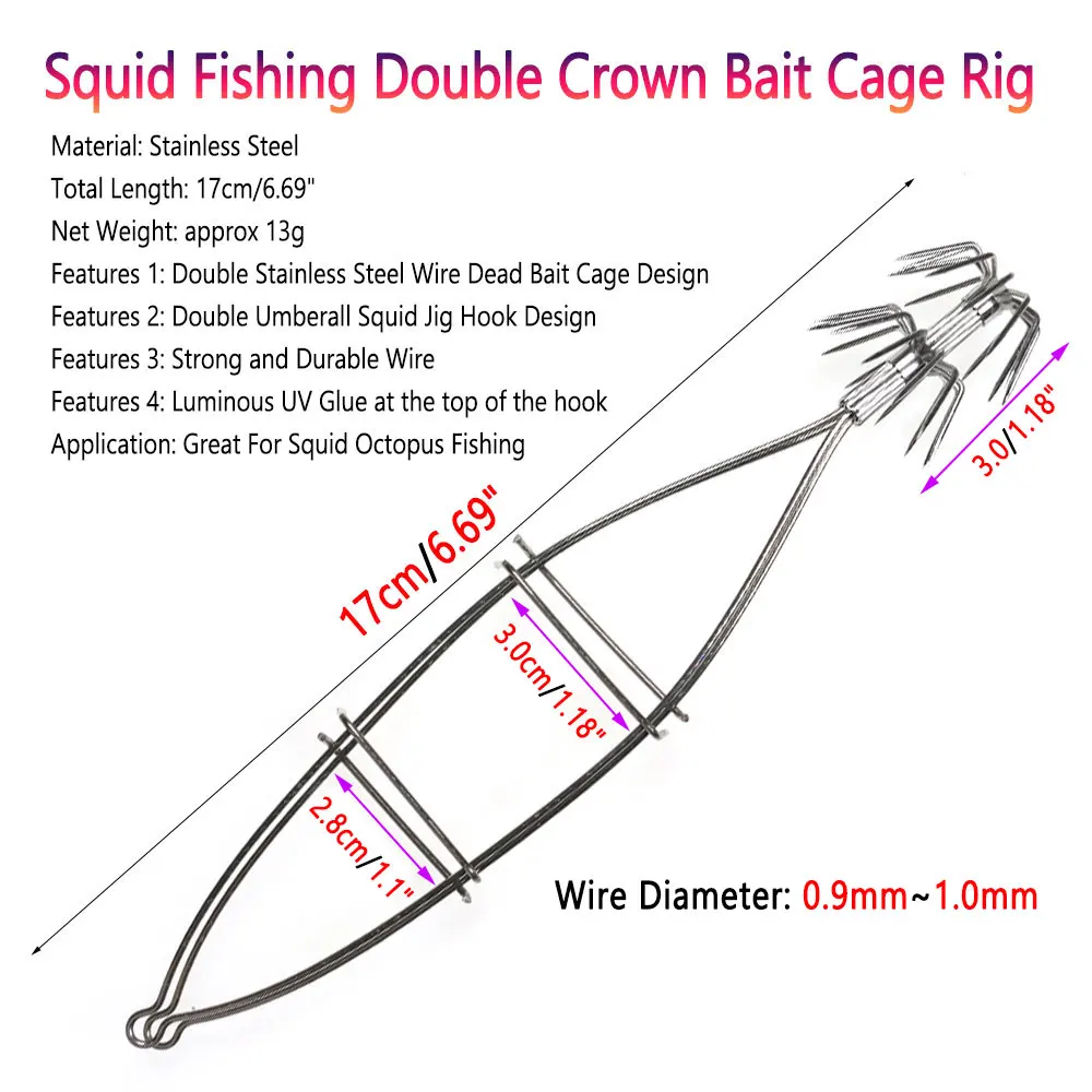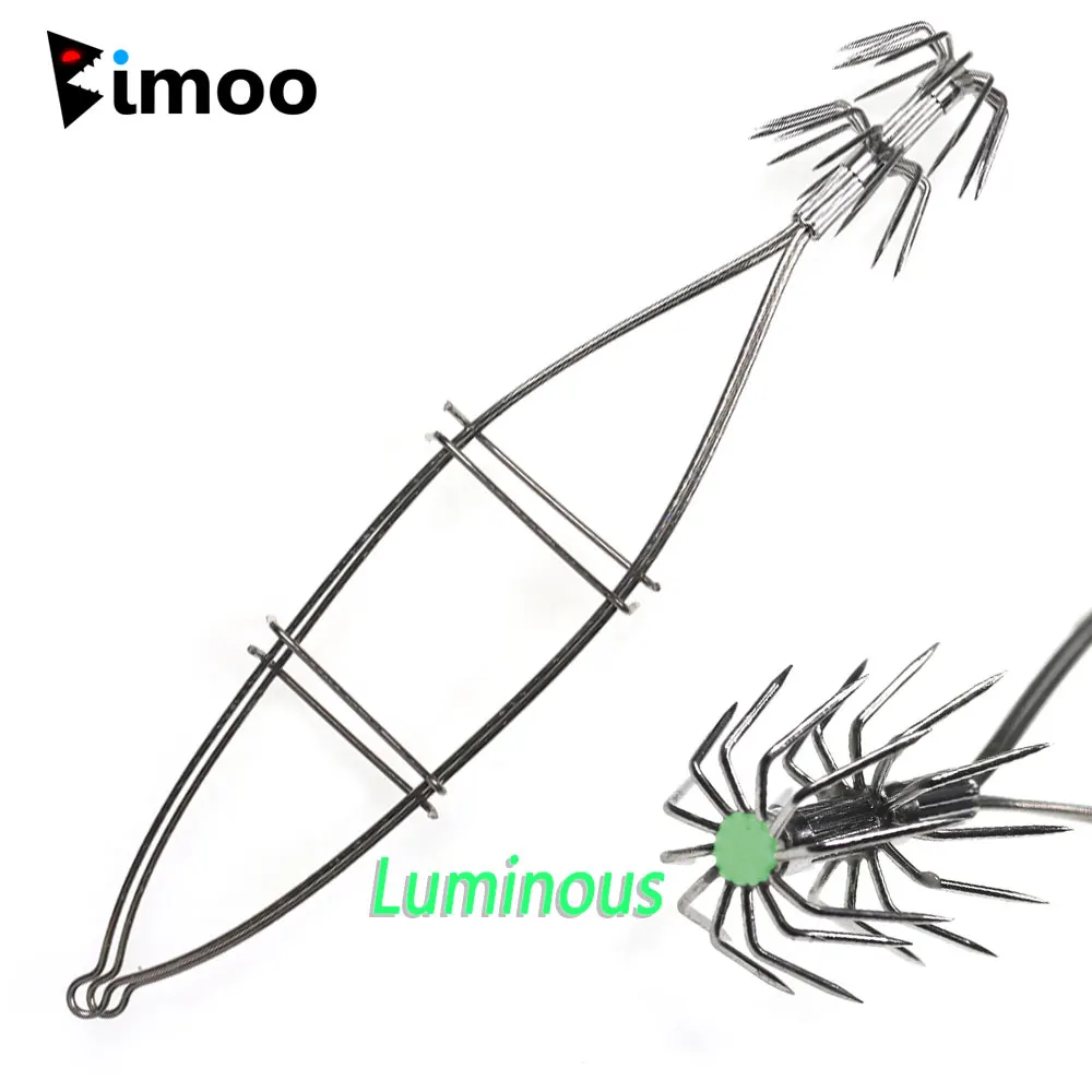 Bimoo 17cm calamar pulpo pesca acero inoxidable doble corona cebo jaula Rig luminosa doble paraguas Jig gancho aparejos de pesca