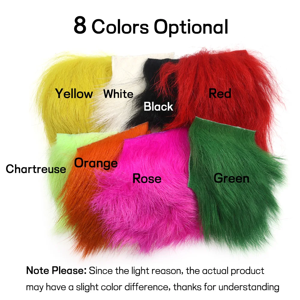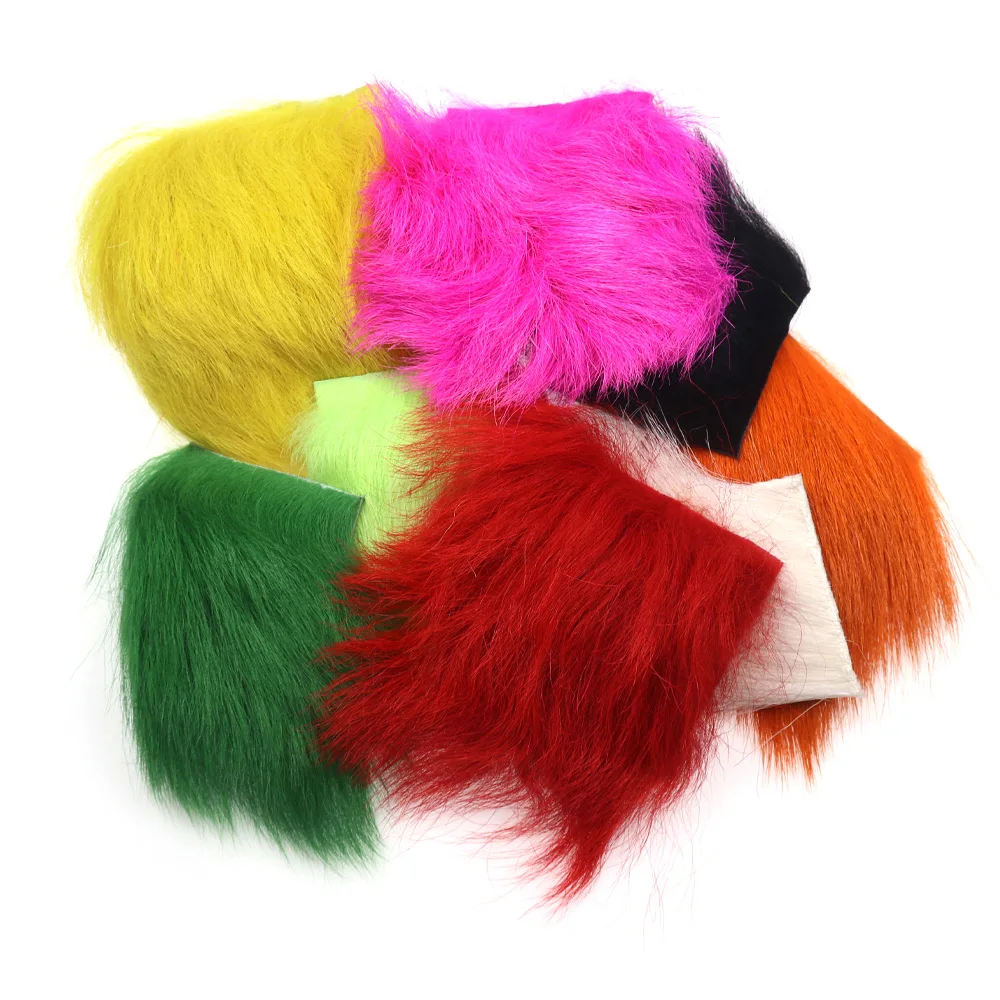 Bimoo 1PC 6*6CM parche de piel para atar cabra para paracaídas mosca Mini pelo de oveja para atar Jig señuelo cebo serpentinas Chartreuse naranja