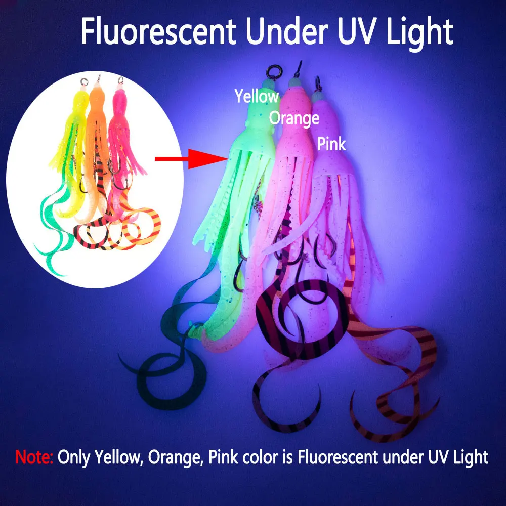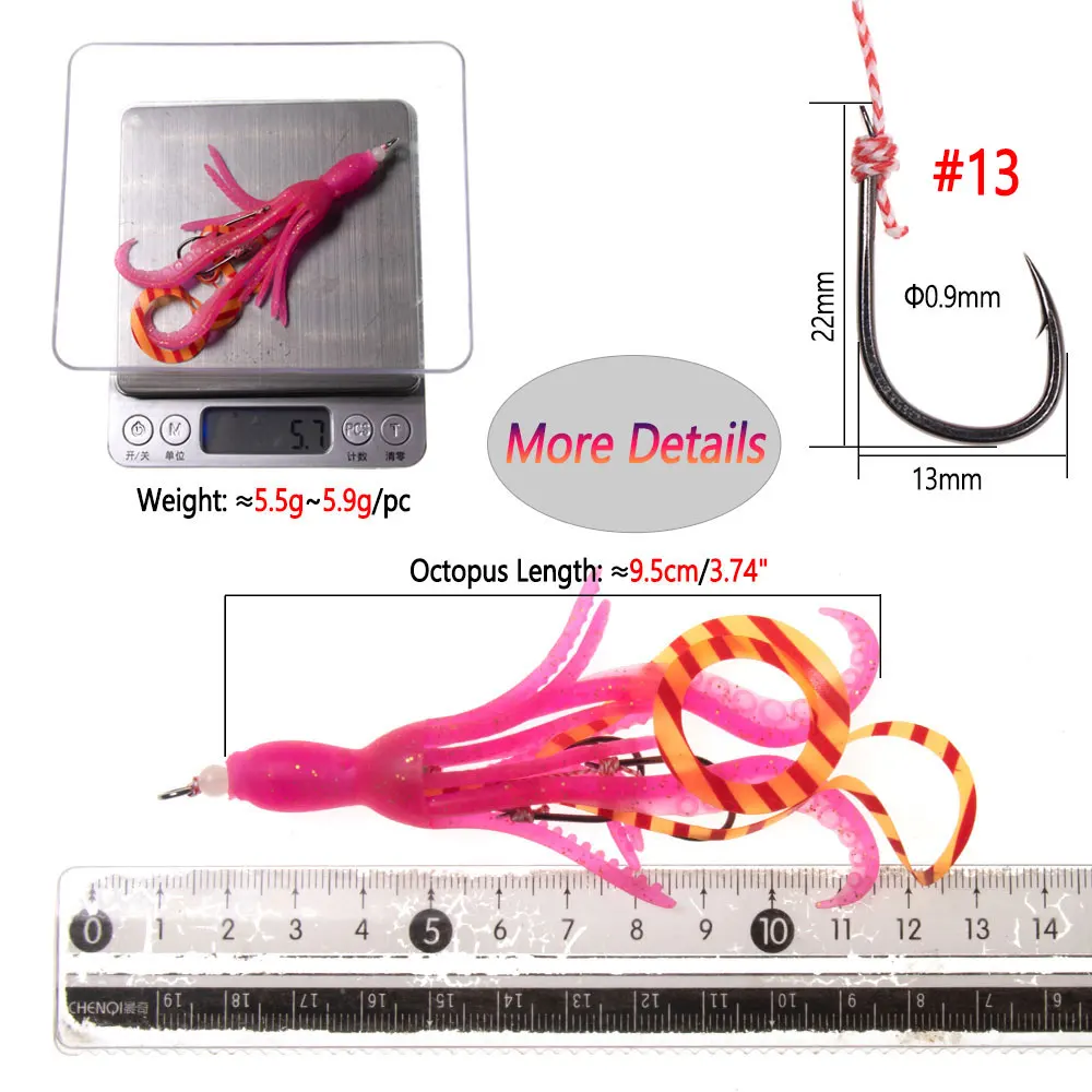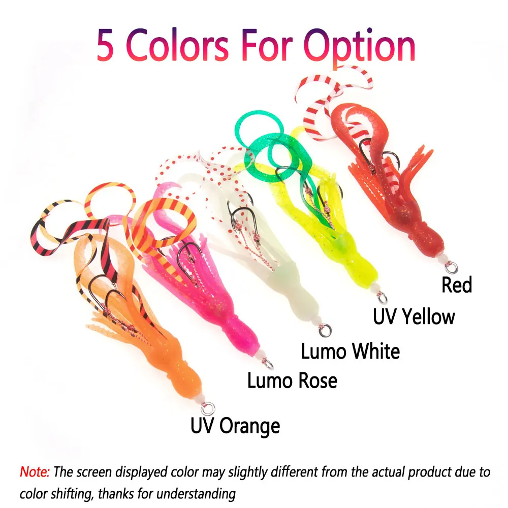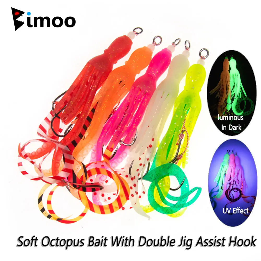 Bimoo 1 pieza 9,5 cm luminosa suave falda de pulpo señuelo Jig ayuda gancho agua salada doble gancho Inchiku anzuelos señuelo pesca Swimbait