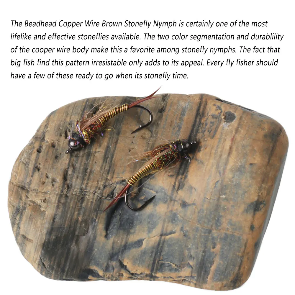 Bimoo#10 6 uds cabeza de cuentas de latón hundimiento rápido Stonefly ninfa marrón Hackle alambre de cobre húmedo ninfa mosca para Señuelos de pesca de trucha cebos