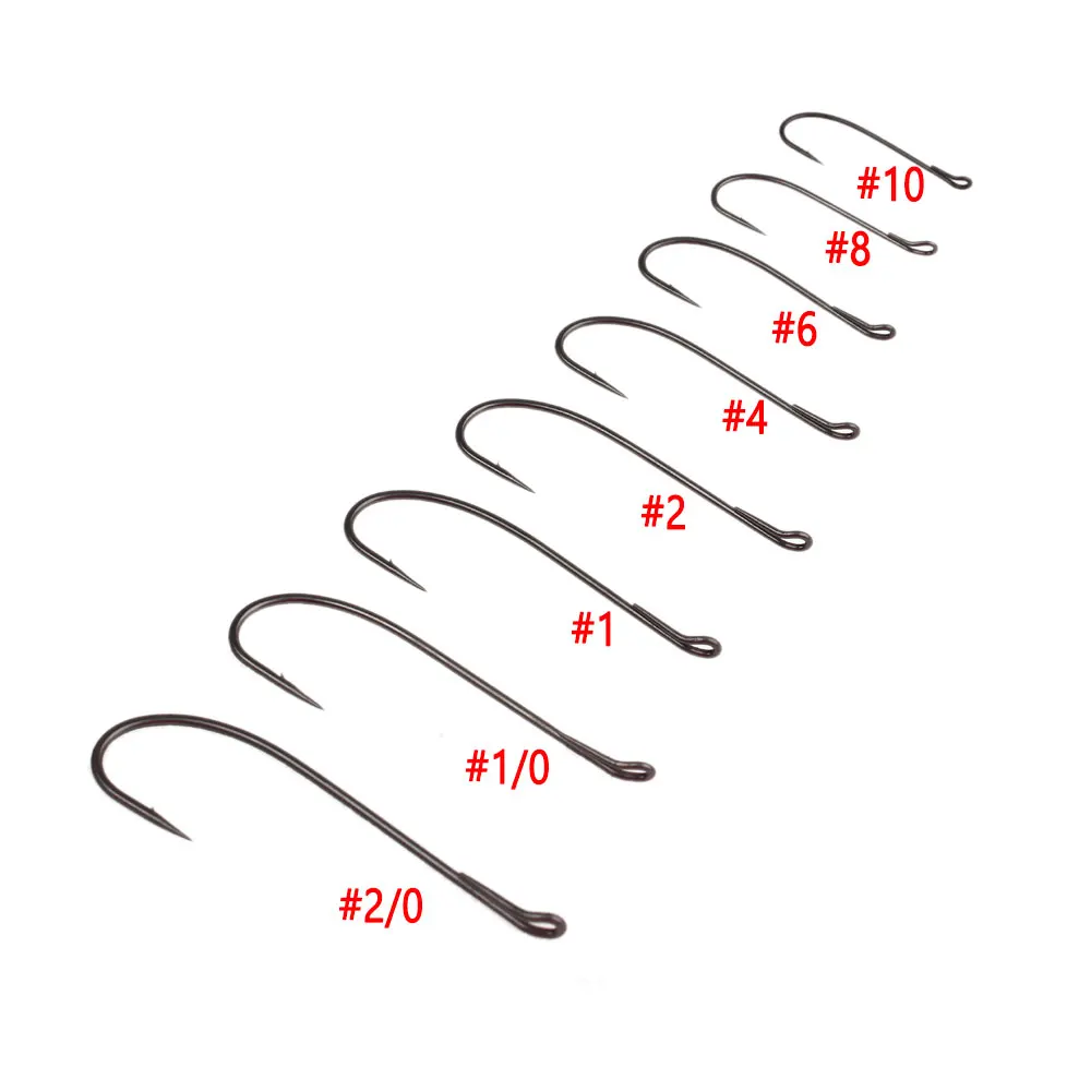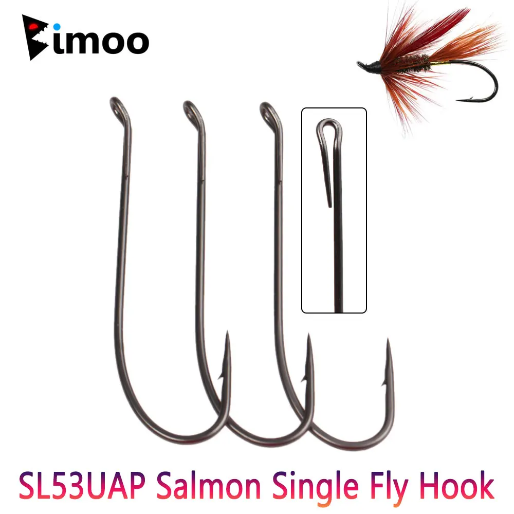 Bimoo 10 piezas#10~#Gancho de mosca única de salmón SL53UAP largo de acero rico en carbono 2/0 para atar Señuelos de pesca de trucha de salmón de serpentina húmeda