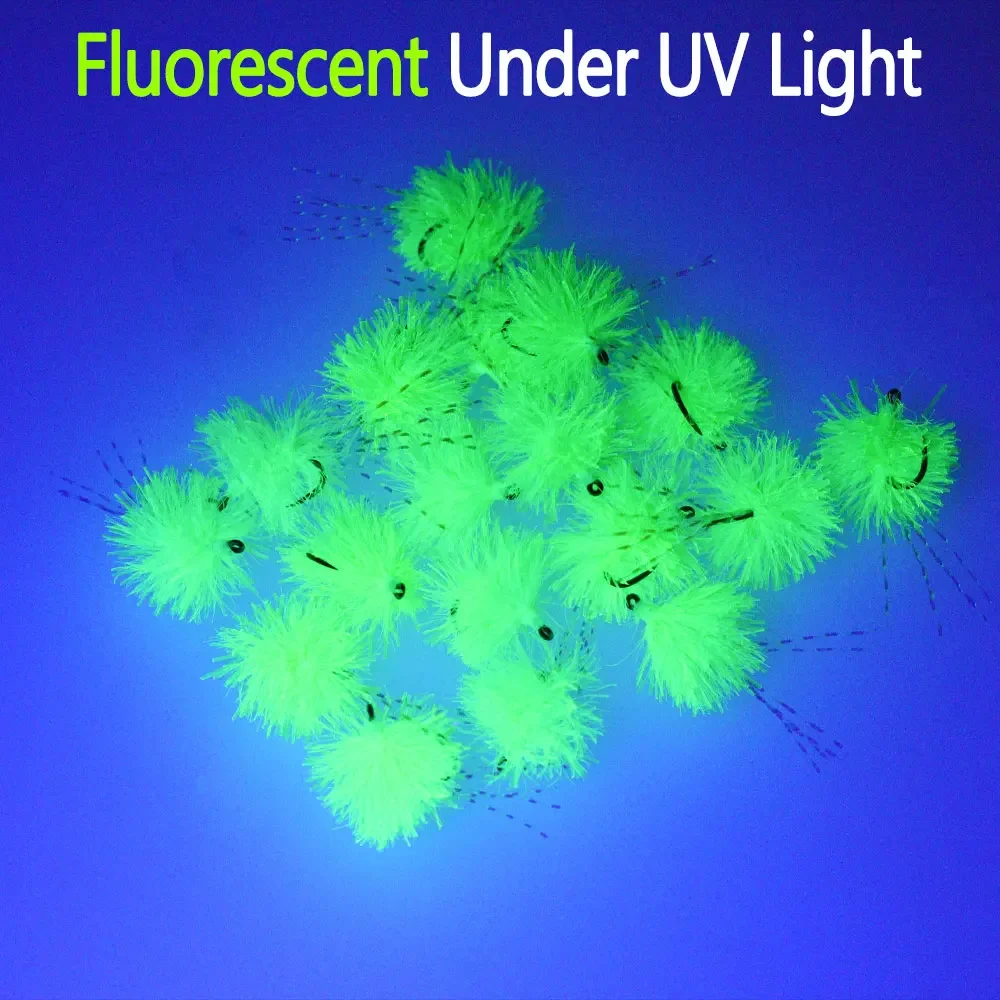 Bimoo10PCS/Box #12 Fluorescent Estaz Egg Fly Barbless Artificial Fish Roe Fly Glo Bug Trout Salmon Steelhead Fishing Eggs Lure Bait