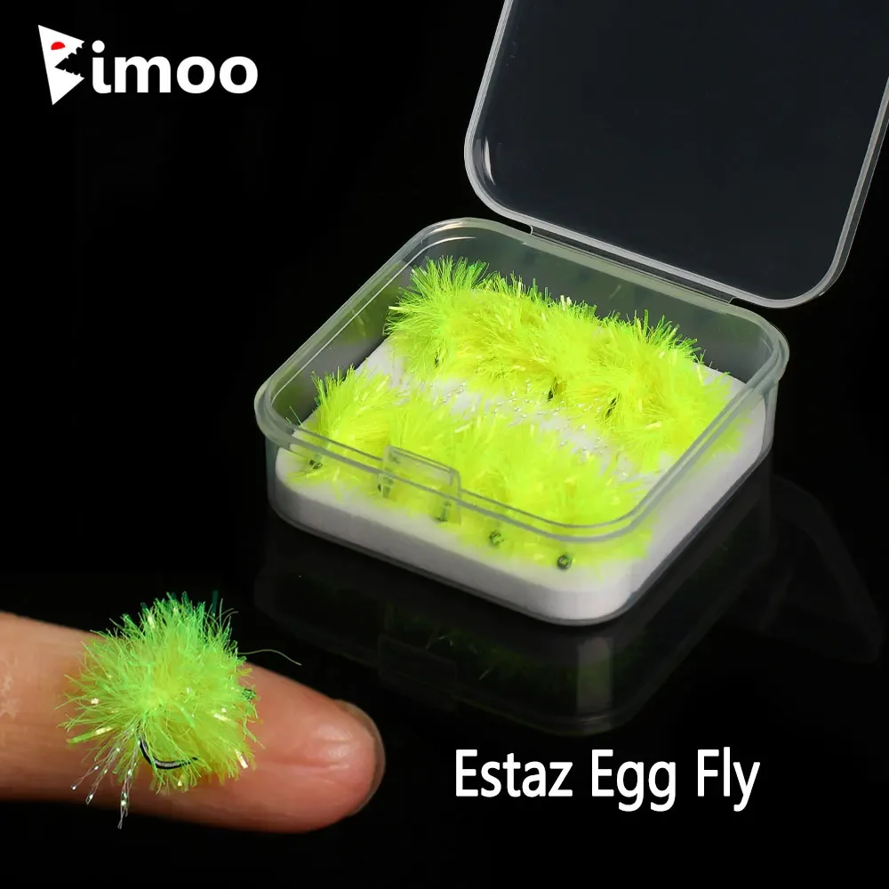 Bimoo10PCS/Box #12 Fluorescent Estaz Egg Fly Barbless Artificial Fish Roe Fly Glo Bug Trout Salmon Steelhead Fishing Eggs Lure Bait