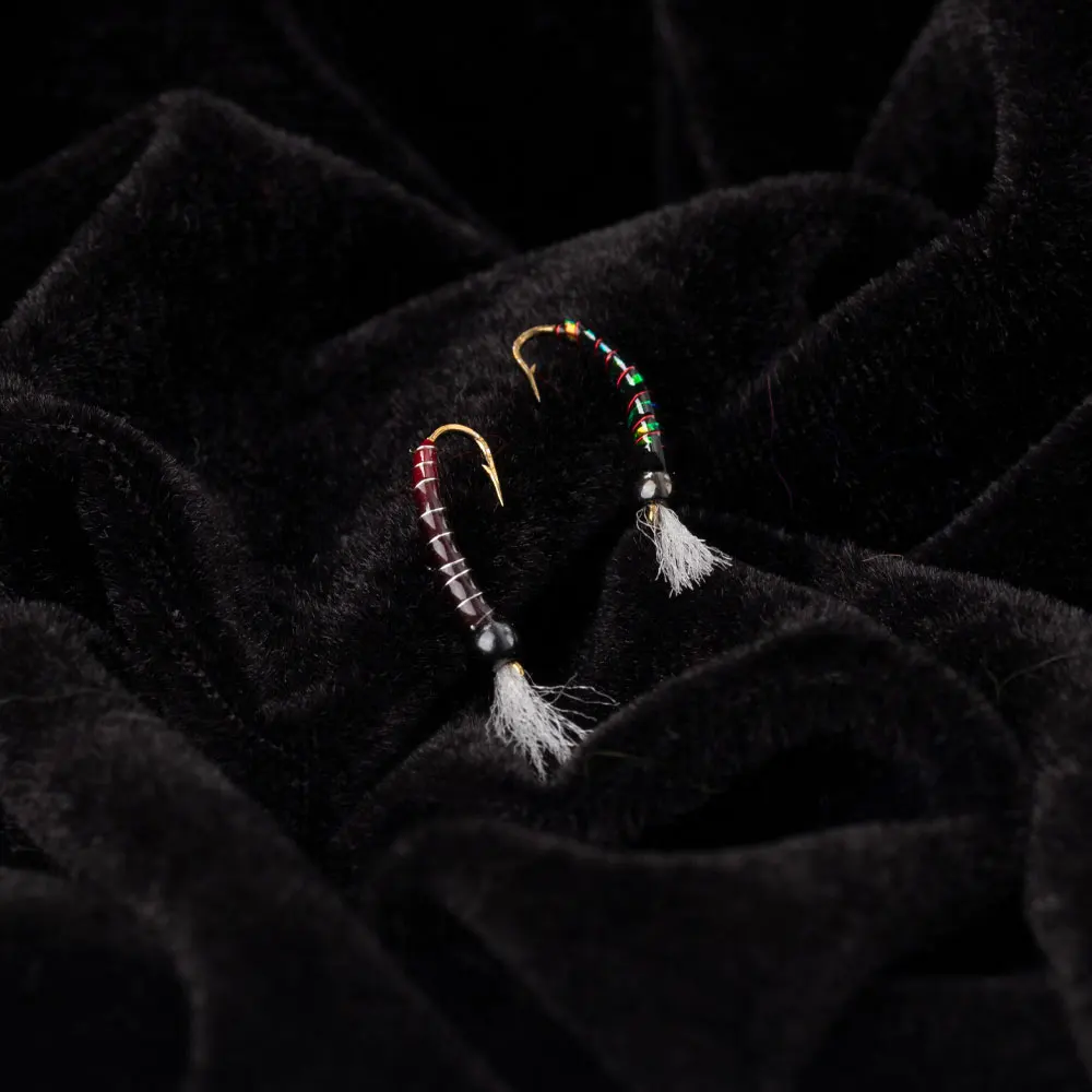 El Zebra Midge Epoxy con cabeza de cuentas de latón es una ninfa muy popular que se utiliza más eficazmente en condiciones de agua lenta.Pesado debajo de un indicador de golpe, el Zebra Midge debe pescar a diferentes profundidades debajo de la superficie.Al imitar una ninfa o pupae emergente, esta mosca puede soportar golpes desde el fondo rocoso hasta unos centímetros de la superficie.Midge pupae es un alimento importante para las truchas en muchos lagos y las porciones más lentas y motas de los ríos de tierras bajas.
