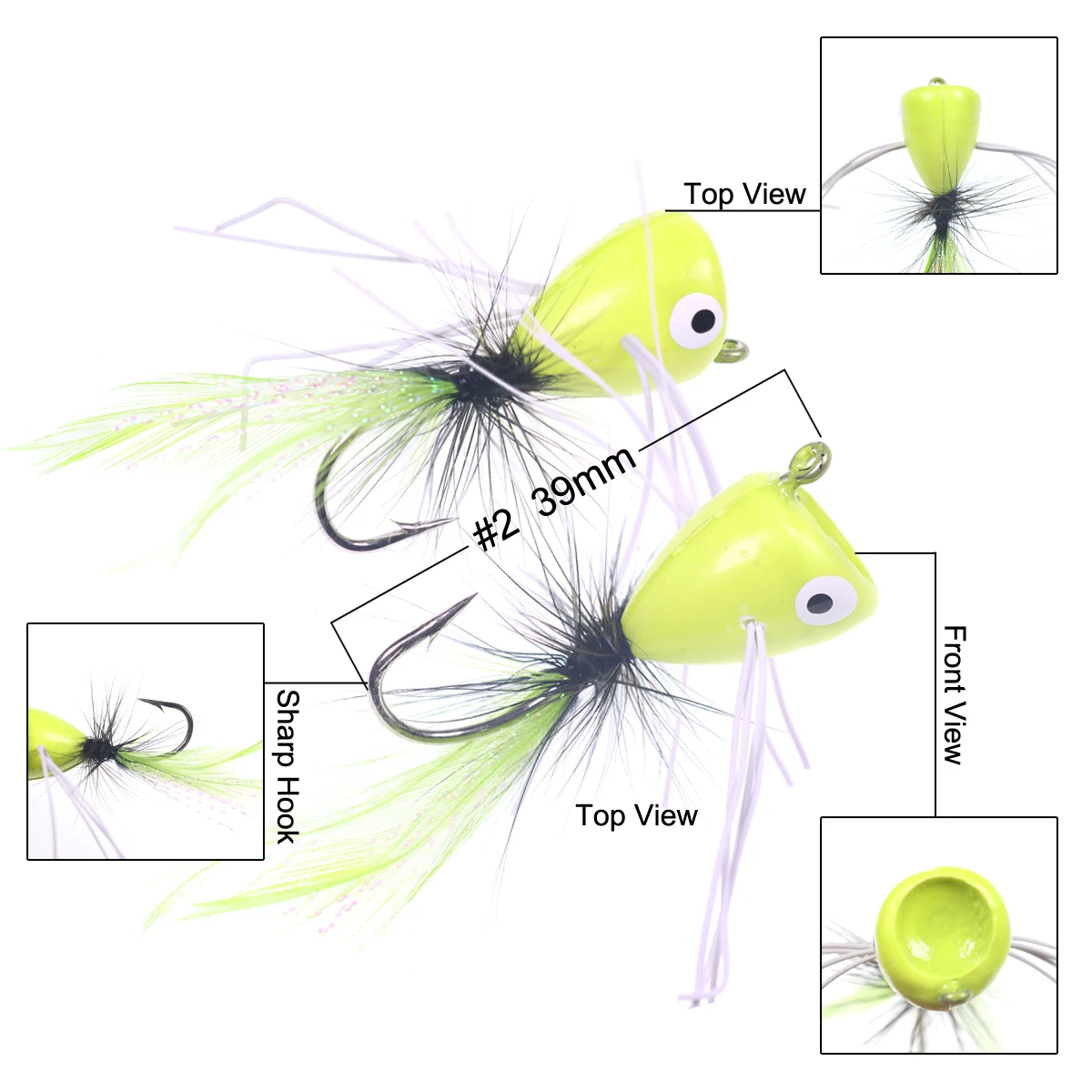 10 piezas tamaño 2 Topwater Pan Fish Popper moscas
