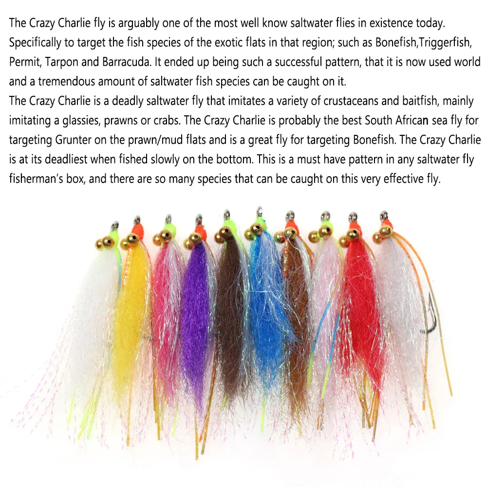 La mosca Crazy Charlie es posiblemente una de las moscas de agua salada más conocidas en la existencia actual.Específicamente para apuntar a las especies de peces de los planos exóticos de esa región; como peces de hueso, mariscos, permites, tarpon y Barracuda.Te acabó siendo un patrón de este éxito, que ahora se usa en el mundo y se puede capturar una tremenda cantidad de especies de peces de agua salada.