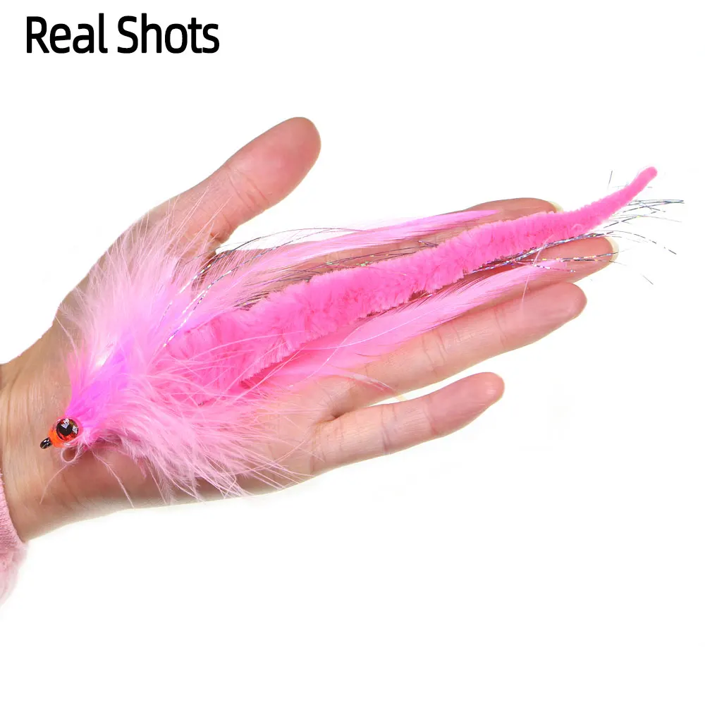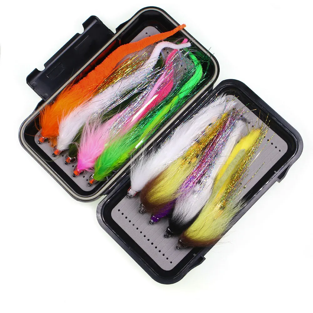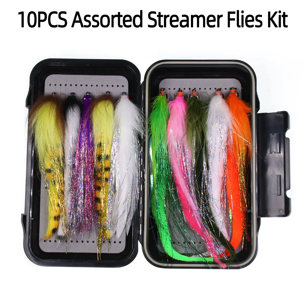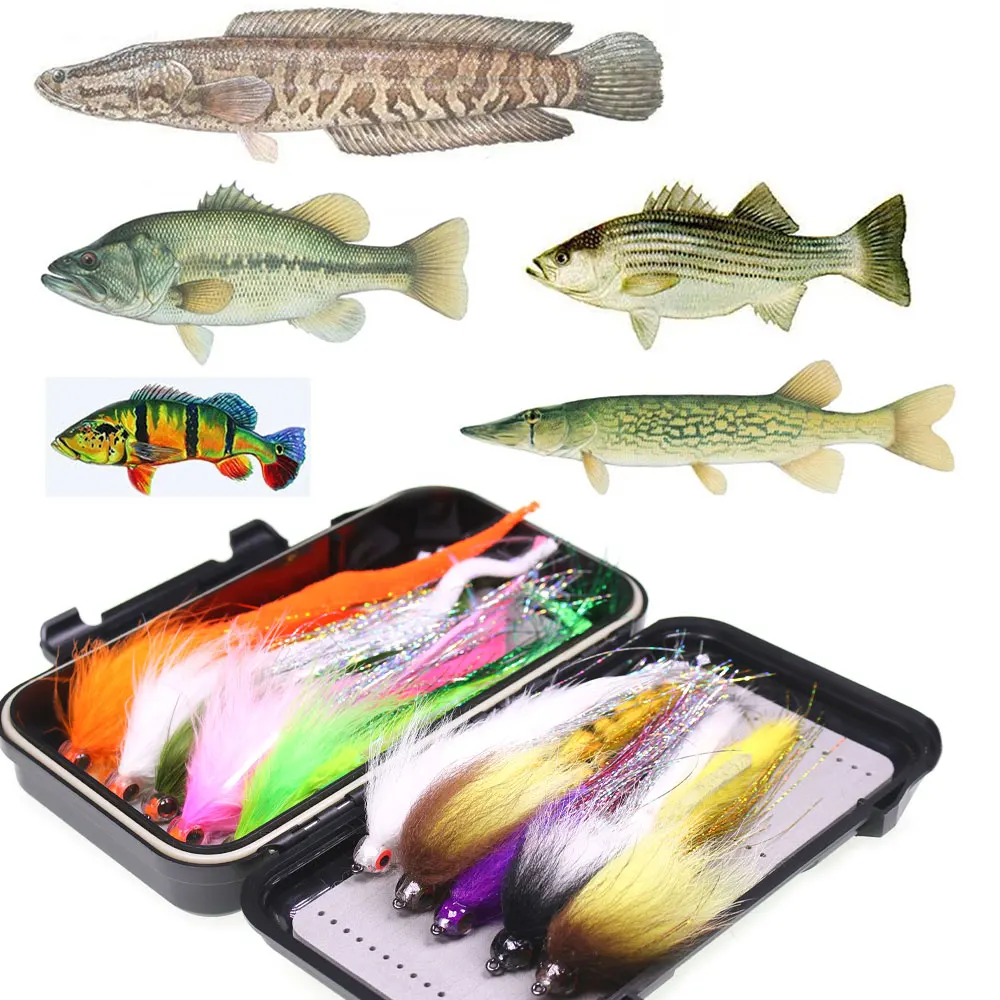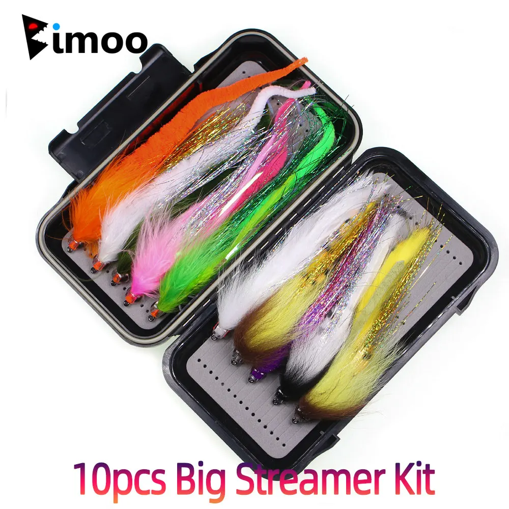 Bimoo 10 Uds 2/0 Kit de moscas de serpentina de peces grandes tira de lebre Zonker suspendido cebo serpentina Musike trucha lubina Lucio señuelo de pesca en el mar