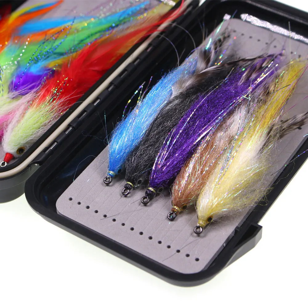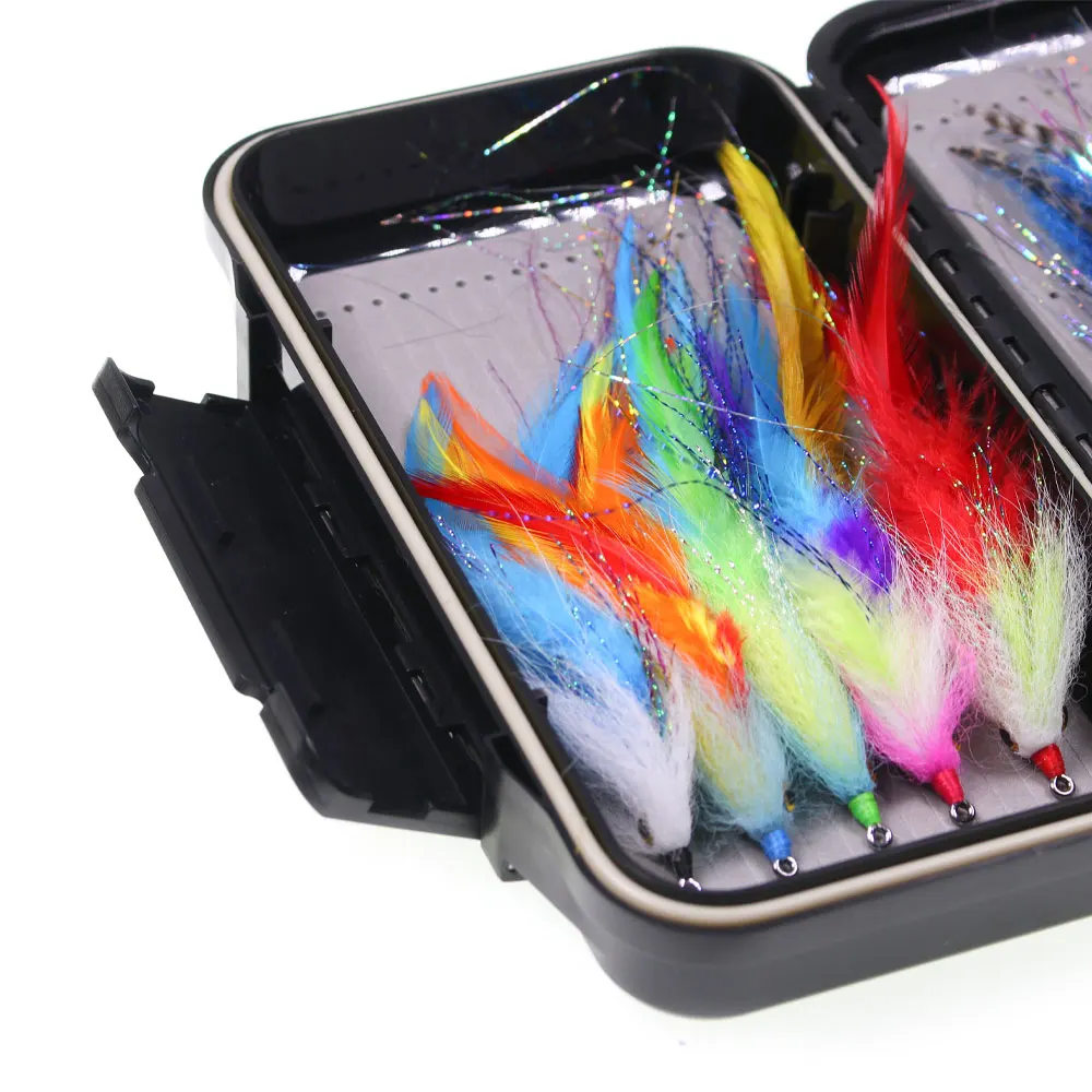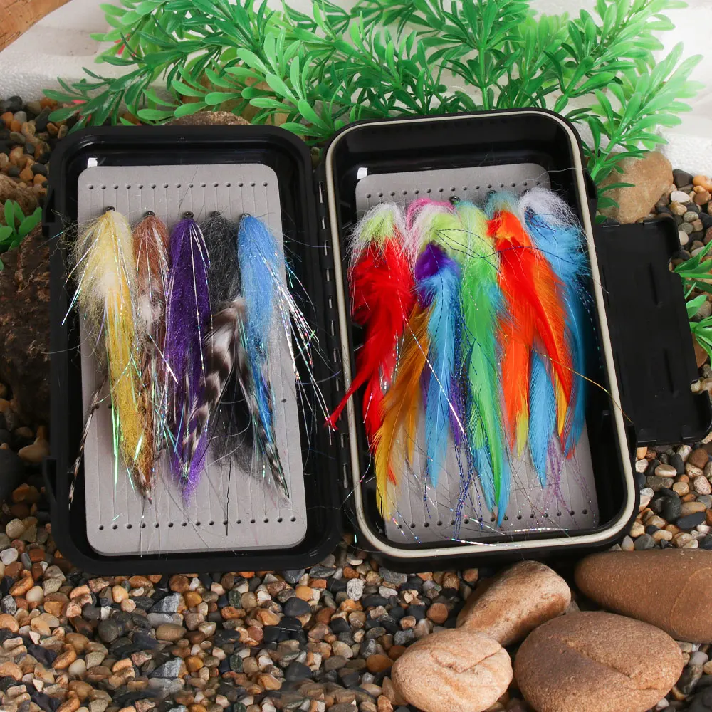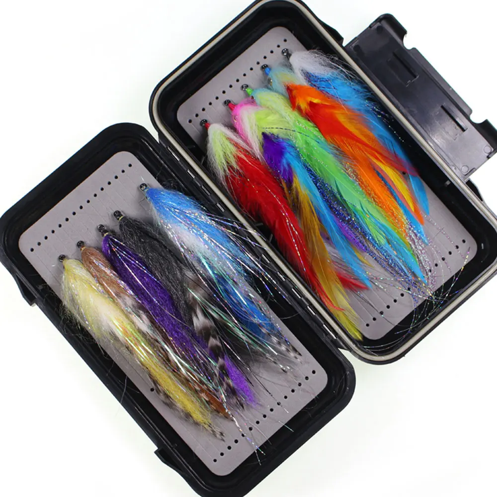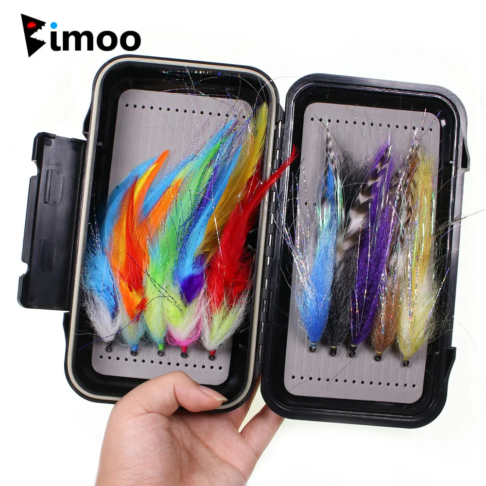 Bimoo, 10 Uds., Kit de serpentinas de peces y moscas, serpentinas de plumas de gallo, serpentinas de plumas EP de fibra sedosa, trucha, lubina, PIke, señuelos de pesca en el mar