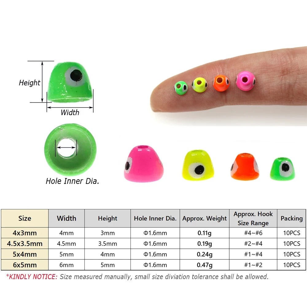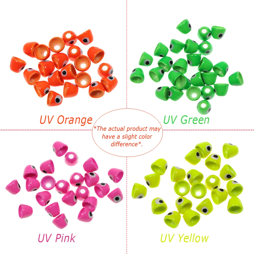 Bimoo 10 Uds UV pintura ojo latón cono cabeza cuentas lana Buggers Streamer ninfas trucha agua salada pesca moscas señuelo atar materiales