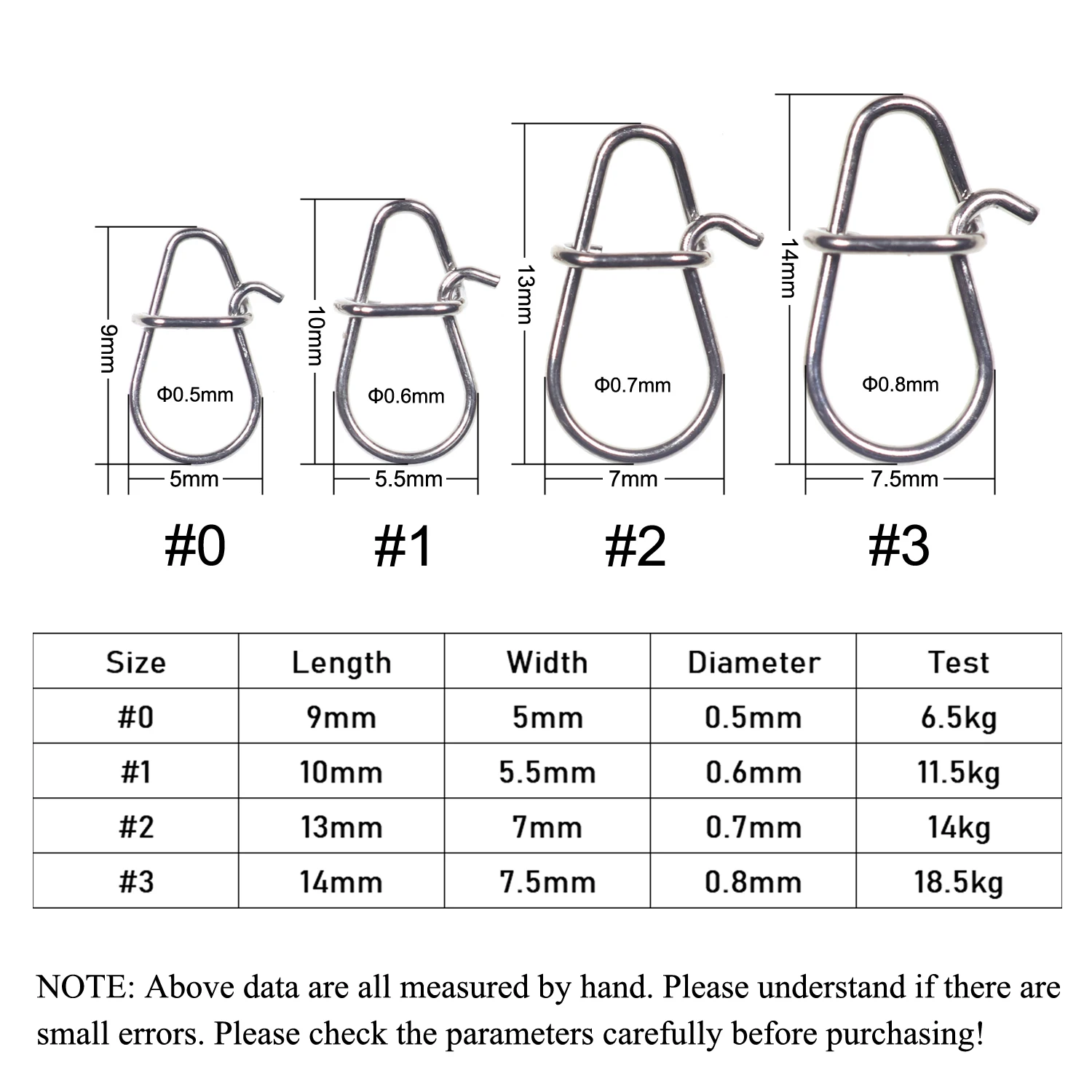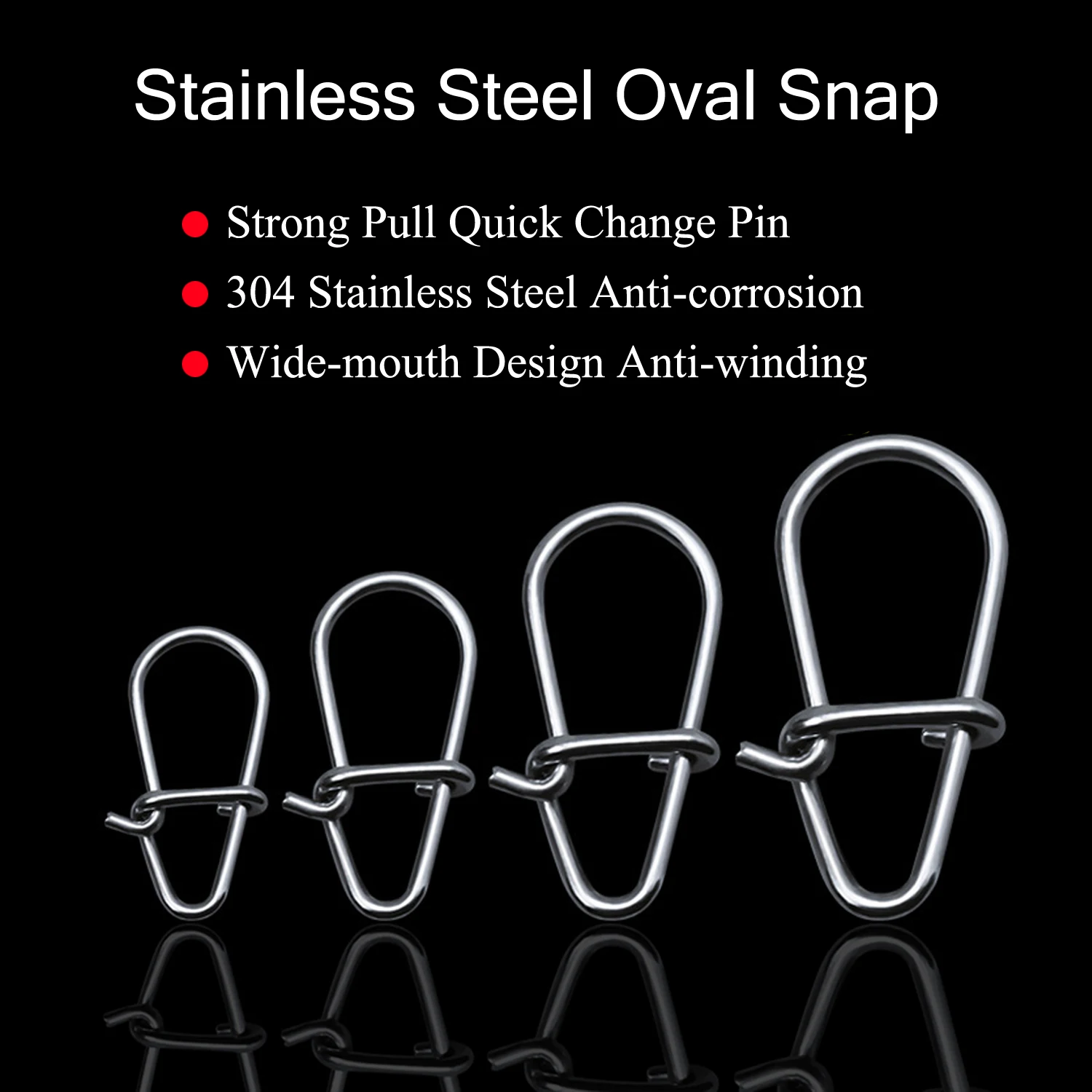 Bimoo 100 Uds. Pin de bloqueo de Clip rápido de seguridad de acero inoxidable, broche ovalado, fuerte tracción, señuelo de pesca anticorrosión, accesorios de conector