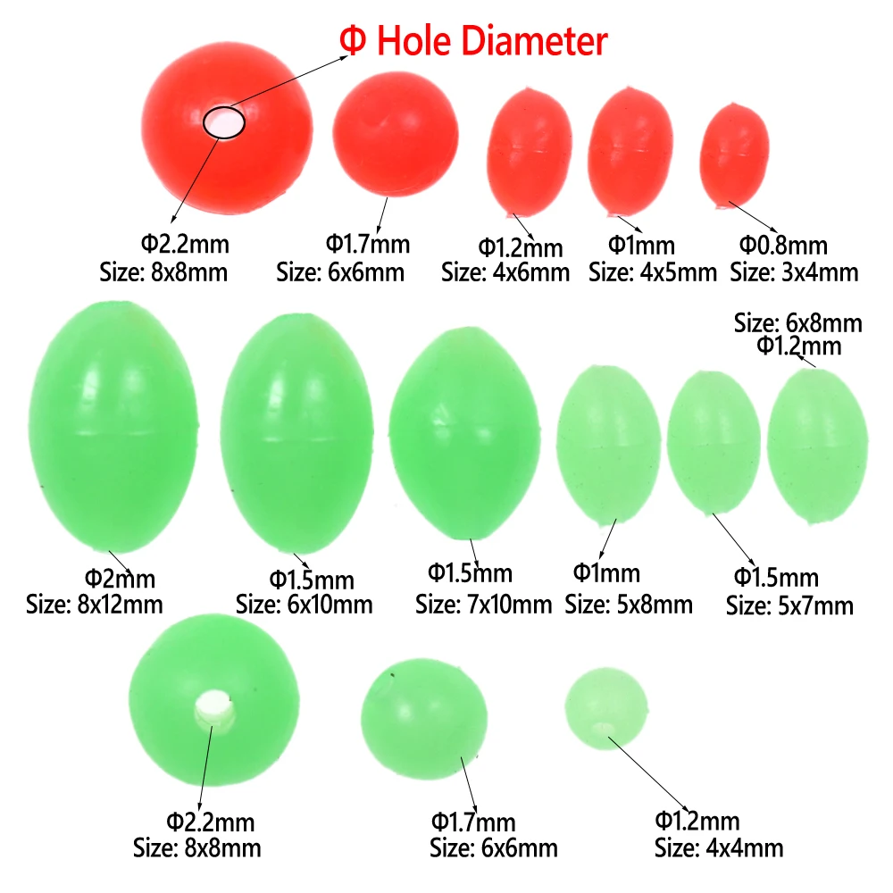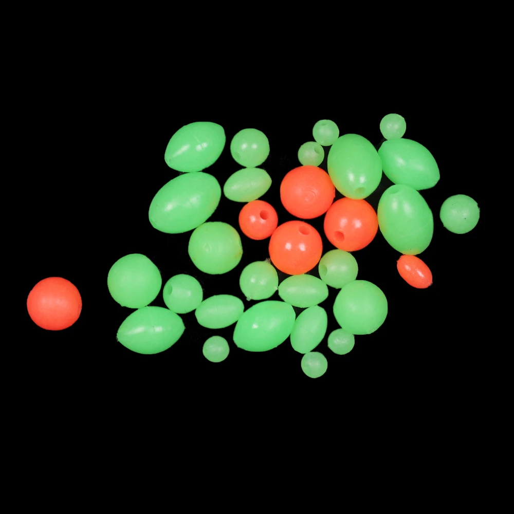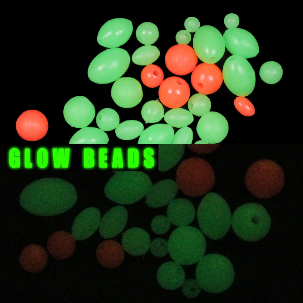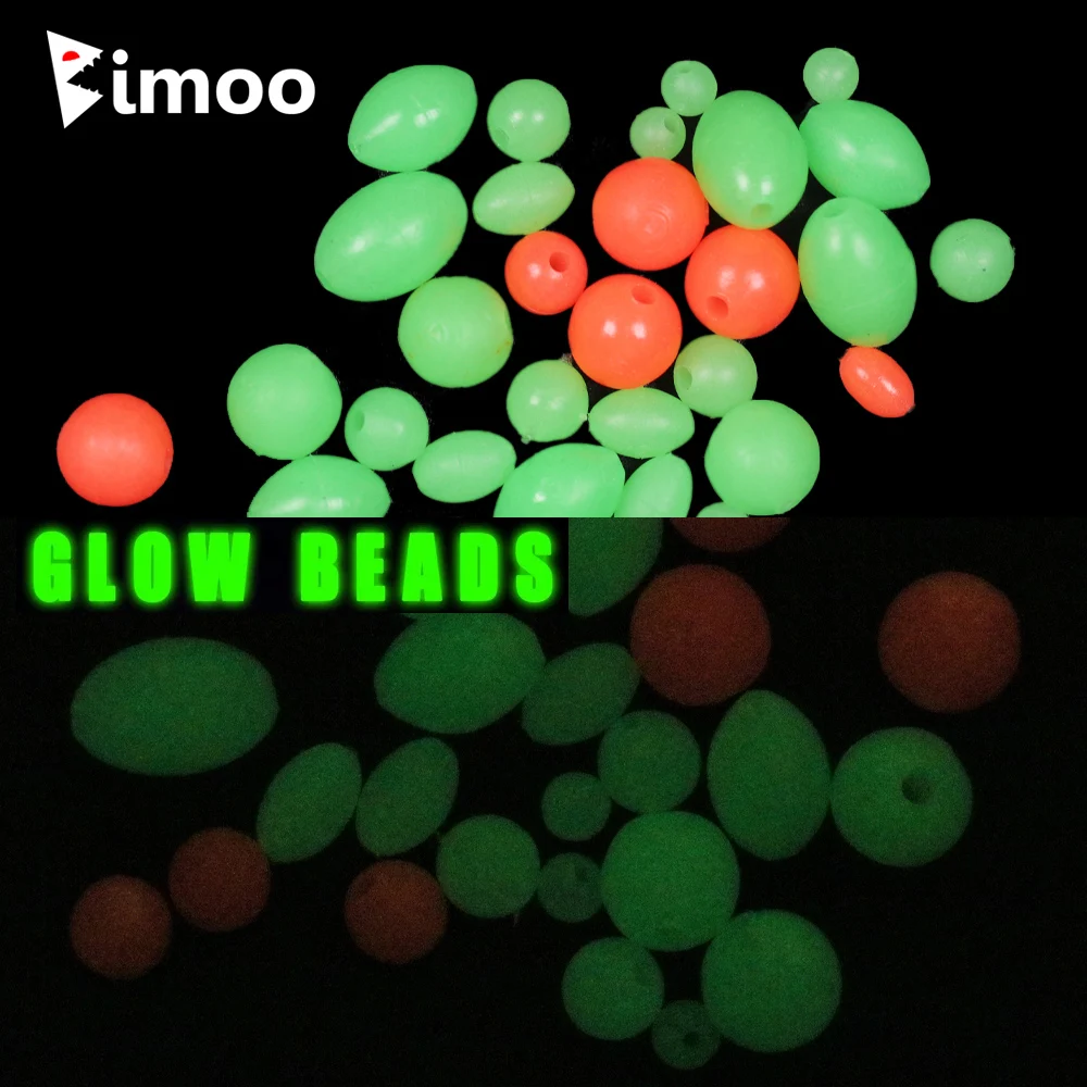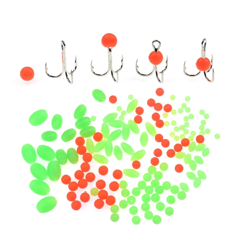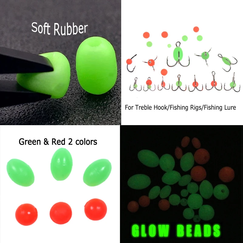 Bimoo, 100 Uds., cuentas de pesca luminosas suaves ovaladas, fregadero redondo, cuentas Lumo brillantes para anzuelos triples, aparejos de Pesca, Señuelos de Pesca verdes y rojos