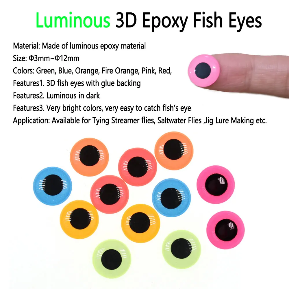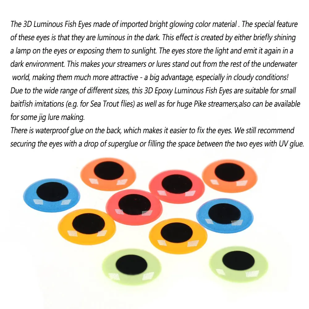 Bimoo 100 Uds luminoso epoxi 3D ojos de pez Material para atar moscas para serpentina agua salada moscas Señuelos de pesca plantilla señuelo que hace accesorio