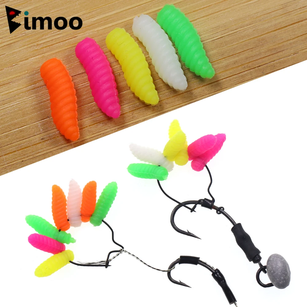 Bimoo 100 unids/caja de pesca flotante gusanos alimentador de método Artificial cebo de gusanos atraer aparejos de pelo de carpa accesorios 5 colores