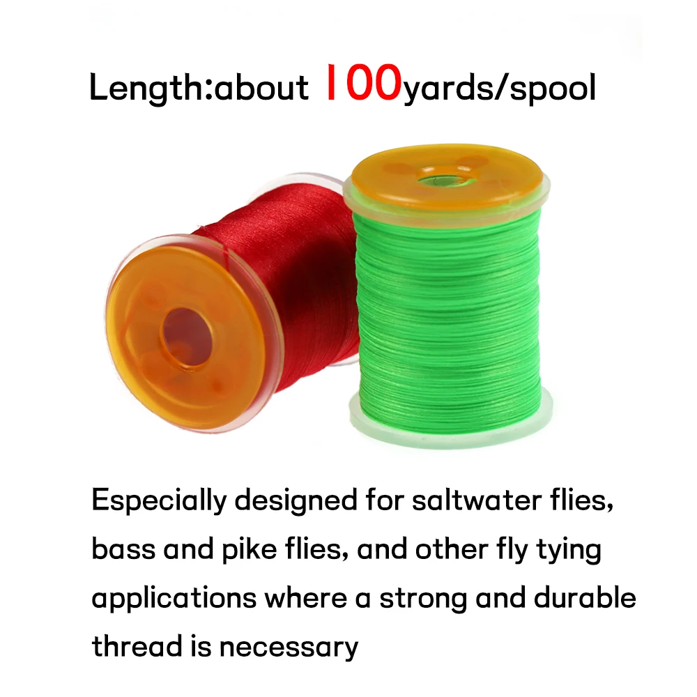 - Súper fuerte.Especialmente adecuado para moscas de agua salada, moscas de lubina y lucio, y otras aplicaciones de atado de moscas donde se necesita un hilo fuerte y duradero.