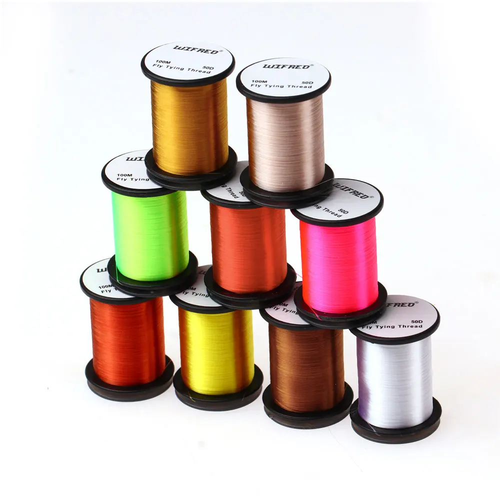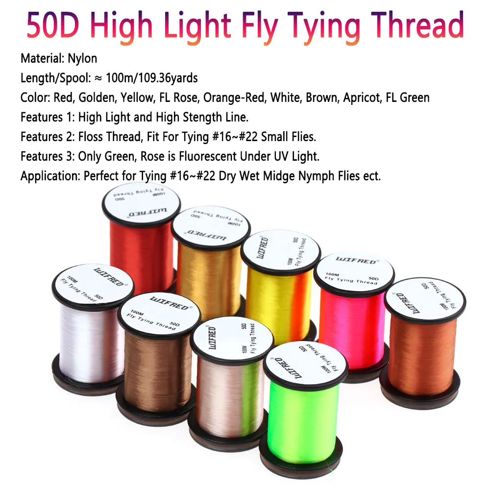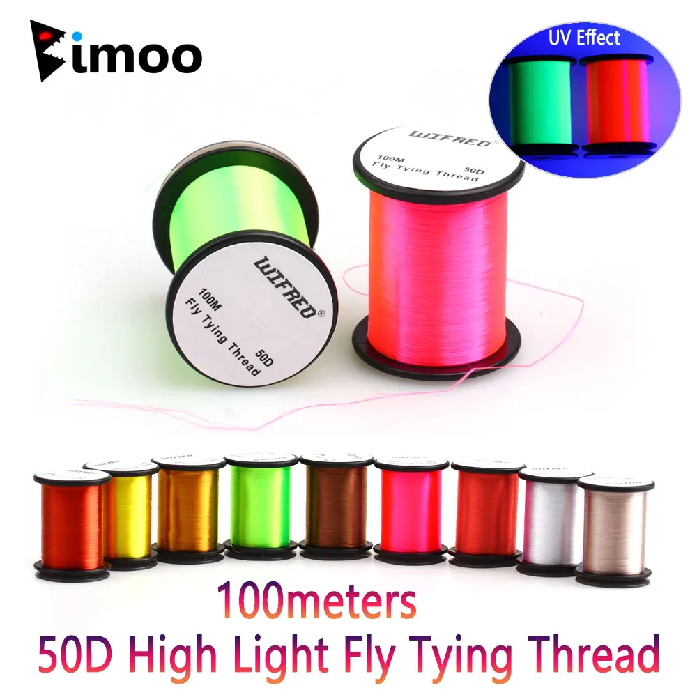 Bimoo 100m/Carrete 50D Línea de hilo para atado de moscas de alta luminosidad para tamaño 16 ~ 22 moscas Material para atado de moscas de trucha de ninfa seca y húmeda