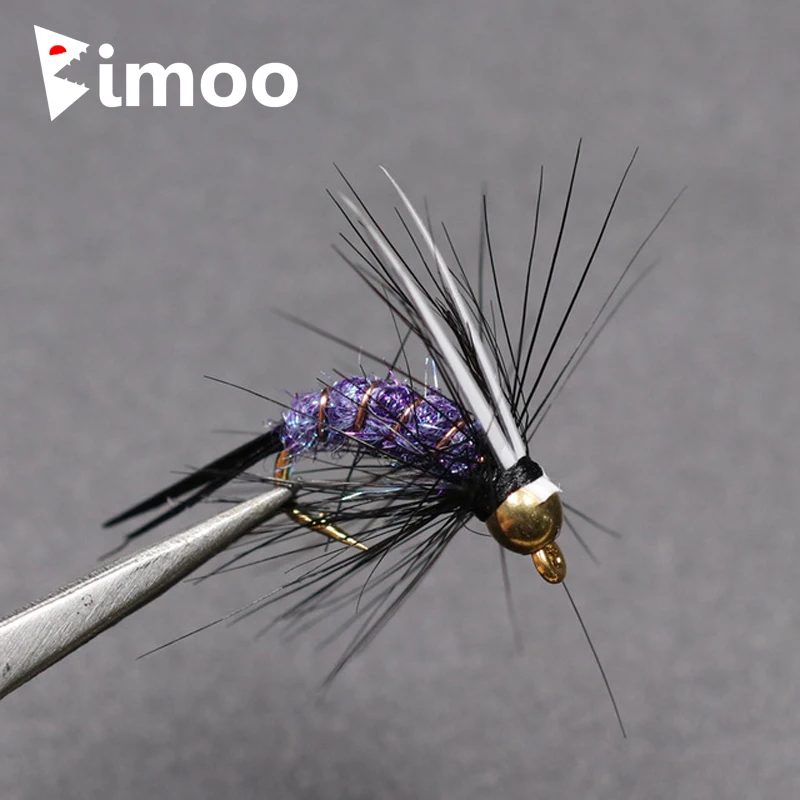 Bimoo 10PCS #12 Psycho Prince Nymph Crazy Purple Prince Nymph Brass Golden head Trout Grayling Fishing Flies