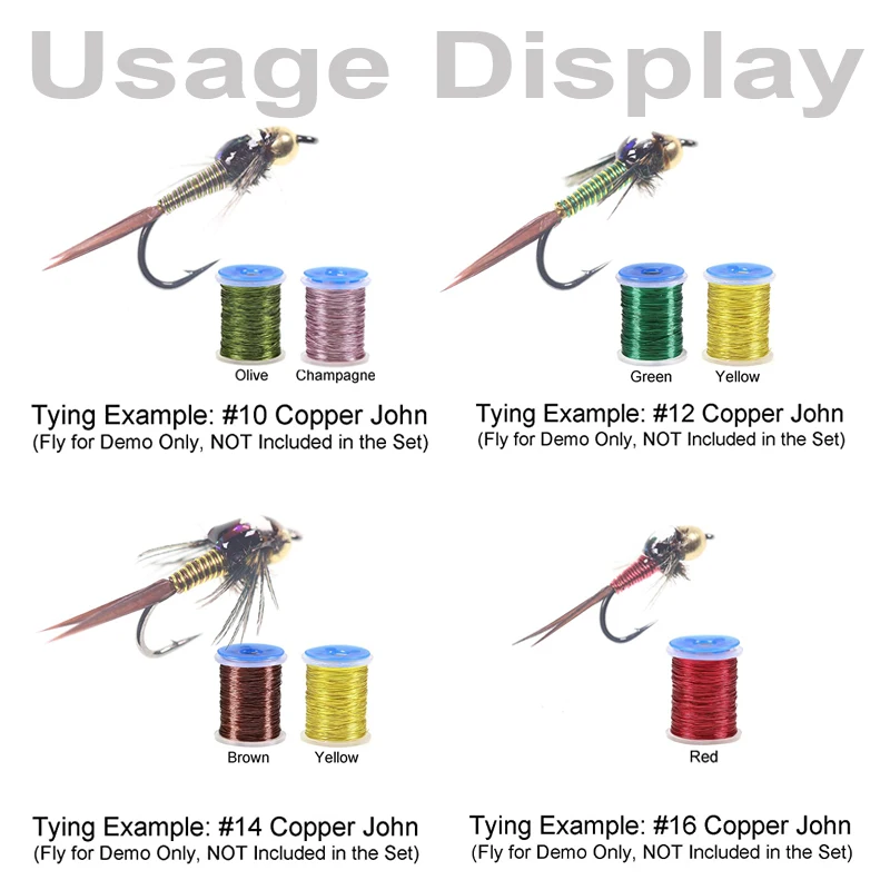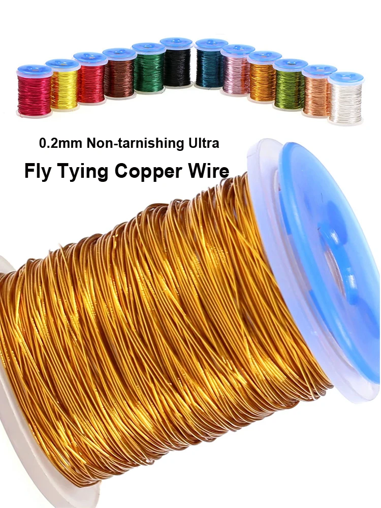 El alambre de cobre es un alambre de atado de moscas a base de cobre sin deslustre que se utiliza para acanalado, peso, flash, alambre de cepillo de doblaje y como componente corporal en ninfas y serpentinas. Este Alambre de alta calidad es un material esencial para atar moscas.