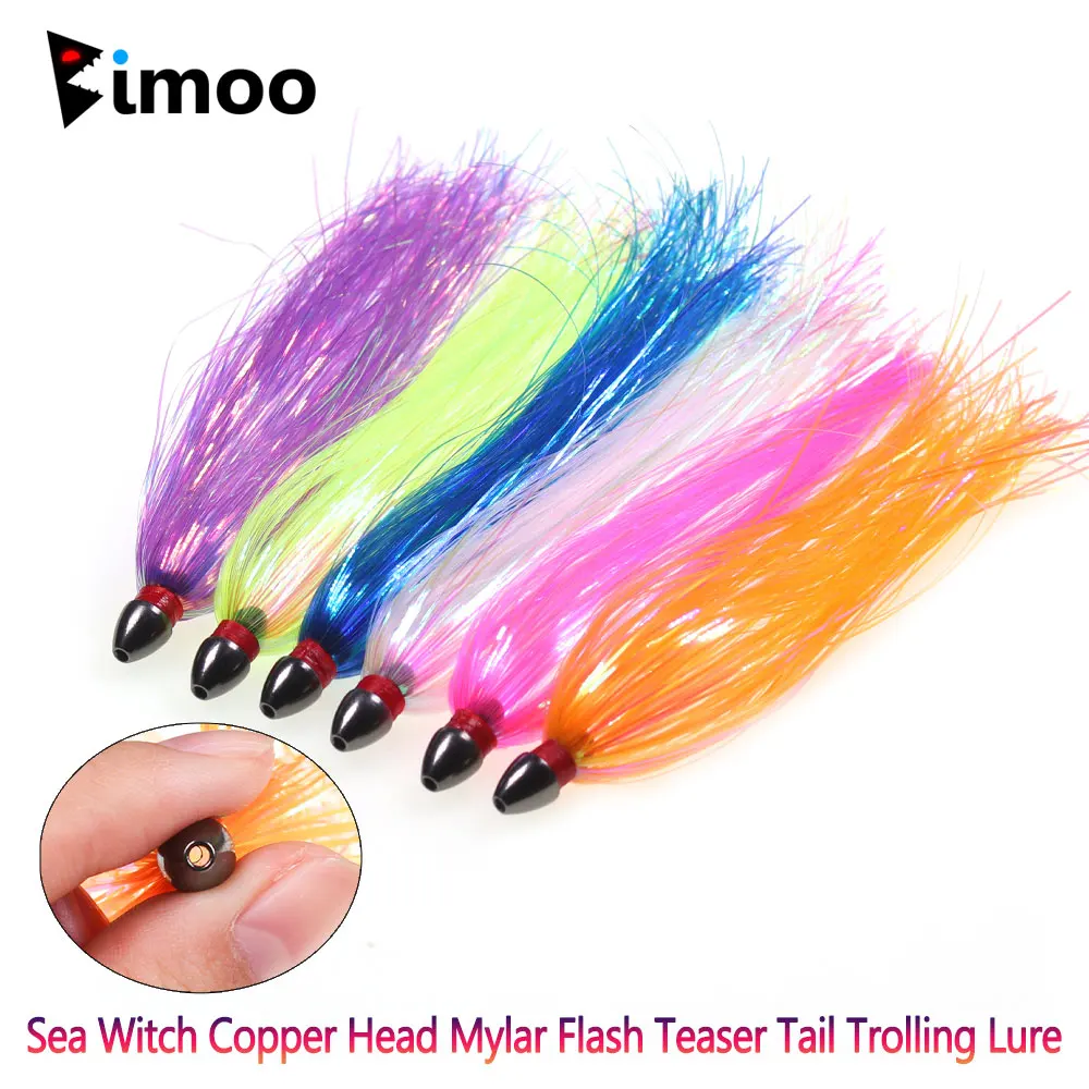 Bimoo 1pc/3/6pcs Mix 13cm/5.12" Sea Witch Copper Head Mylar Flash Teaser Tail Trolling Lure DIY Tuna Snapper Saltwater Ballyhoo Bass Squid Jigs