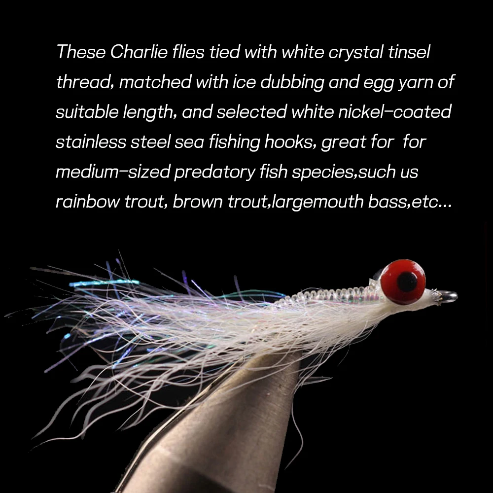 Bimoo 14 unids/caja #6 #8 doblaje de hielo loco Charlie gancho de acero inoxidable moscas señuelo artificial cebo para trucha arco iris lubina