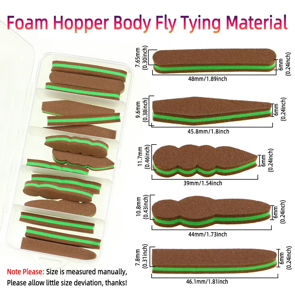 Bimoo, 15 Uds., mezcla/caja, tolva de espuma EVA, Material para atar moscas, saltamontes, moscas flotantes, moscas secas, trucha, lubina, Señuelos de pesca