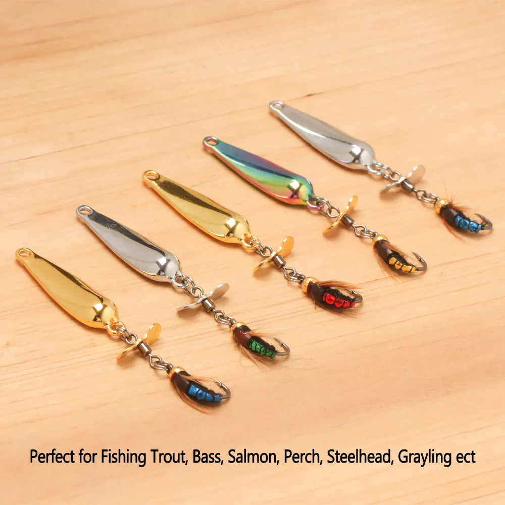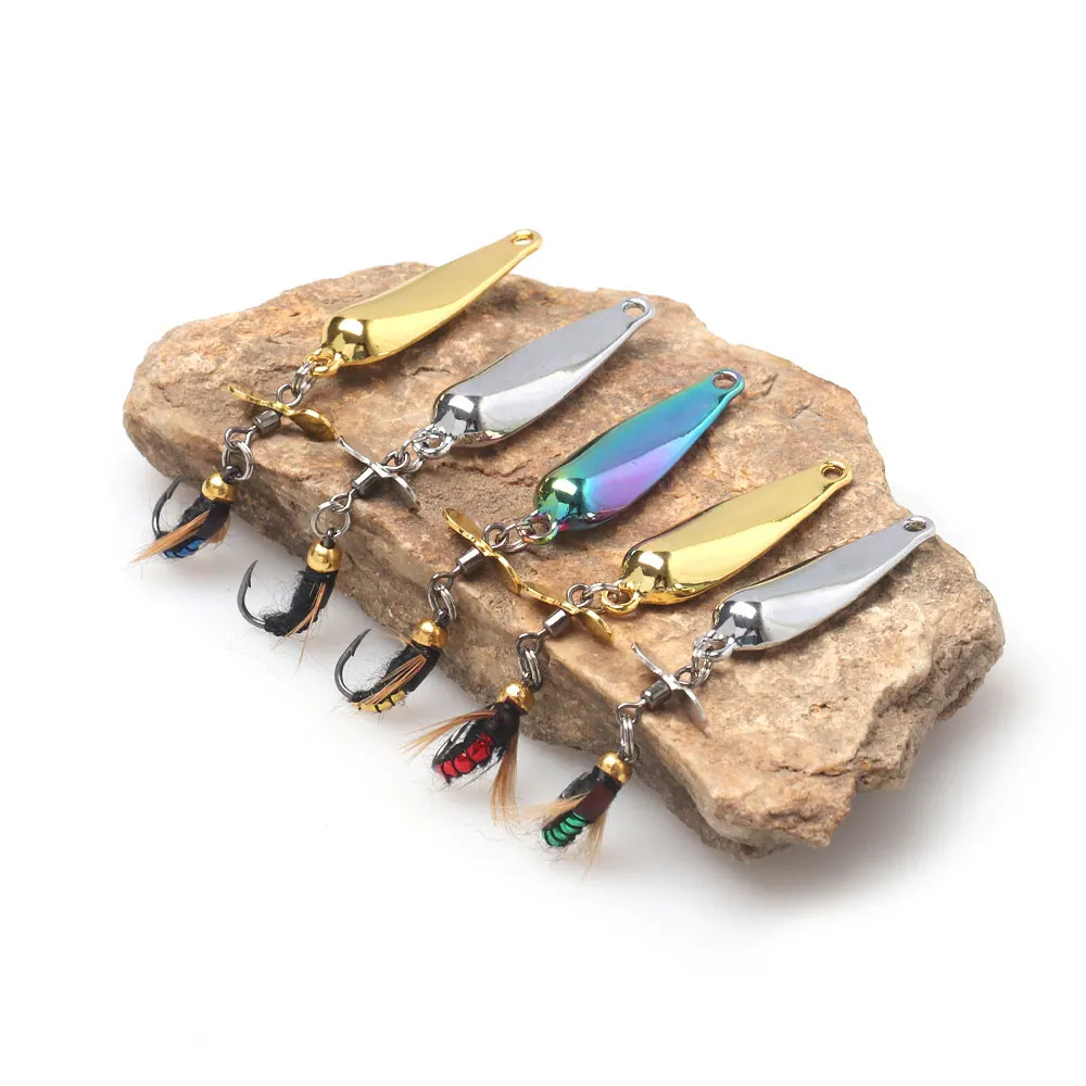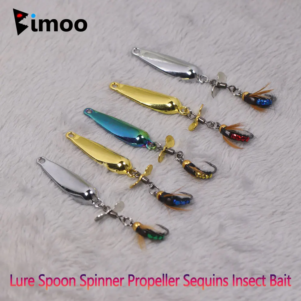 Bimoo 2/3 Uds señuelo de Metal cuchara Spinner hélice lentejuelas cebo para insectos gusano moscas señuelo juego de pesca trucha lubina Señuelos de pesca