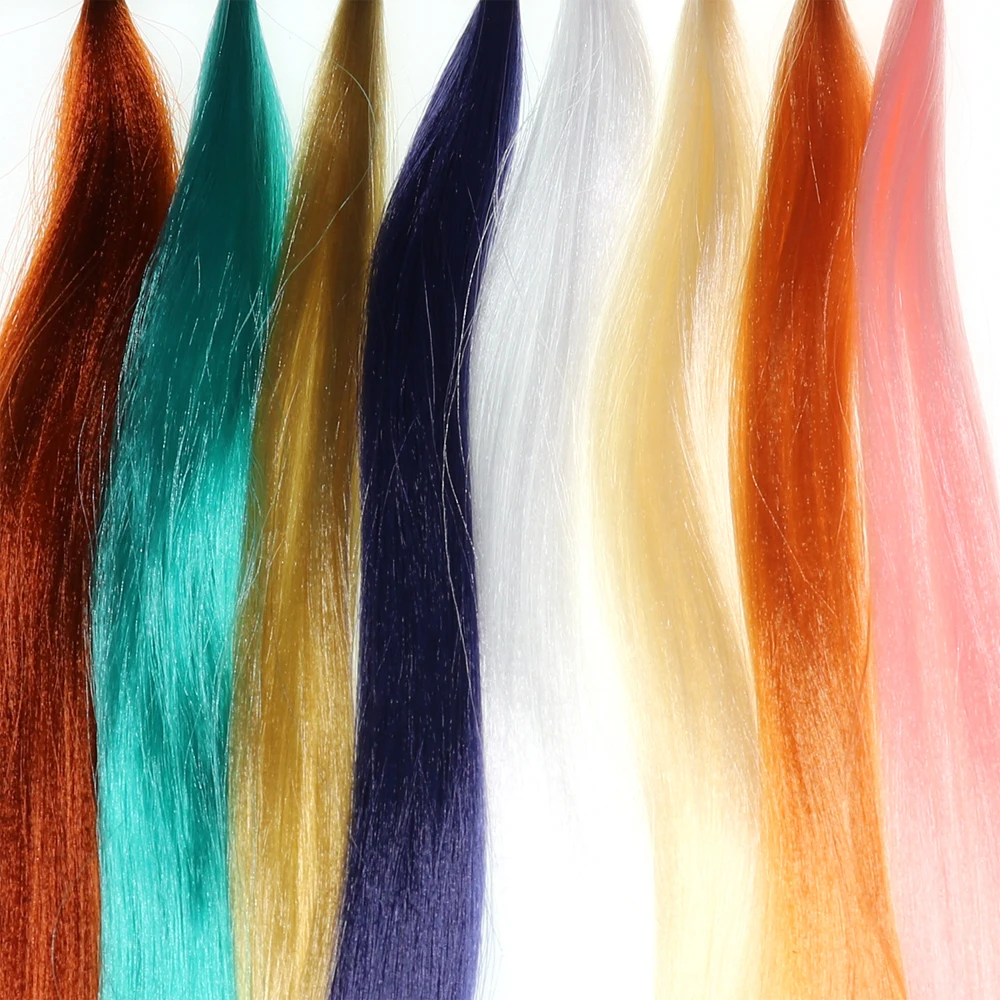 Fibra de pelo sintético supersedosa y brillante Longitud: aproximadamente 40cm plegado en bolsa opp Peso neto: alrededor de 5g/paquete Paquete: unids/lote Fibra capilar de alta calidad en 10 colores. Muy suave y brillante para atar Serpentinas de agua salada y moscas sabiki. Nota 1: El color mostrado en la pantalla puede diferir ligeramente del color real; Nota 2: tamaño medido manualmente, se debe permitir una pequeña tolerancia de división de tamaño;