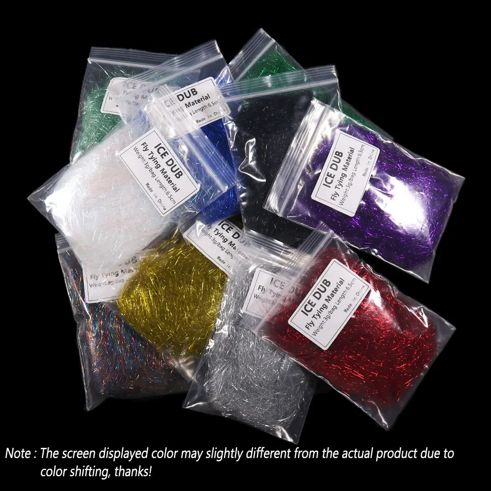 Bimoo 2 paquetes 6,5 cm/2,5 pulgadas de largo doblaje de hielo fibras sintéticas cebo pez vaporrmer brillo fino ala de hielo material para atar moscas 10 colores