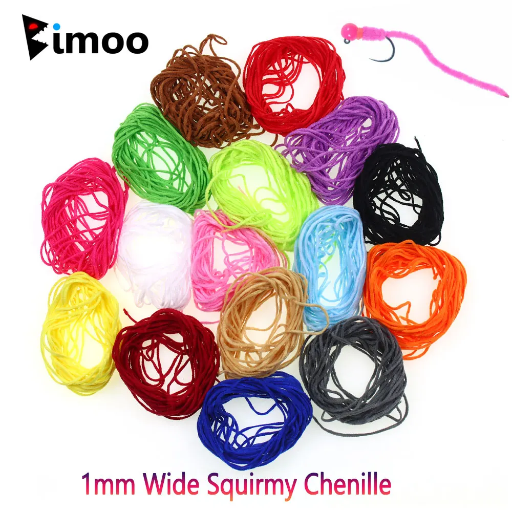 Bimoo 2 paquetes=8 M 1 mm de ancho Material para atar moscas de chenilla Squirmy para gusanos Squirmy Caddisfly Stonefly Mop moscas señuelo de pesca de trucha