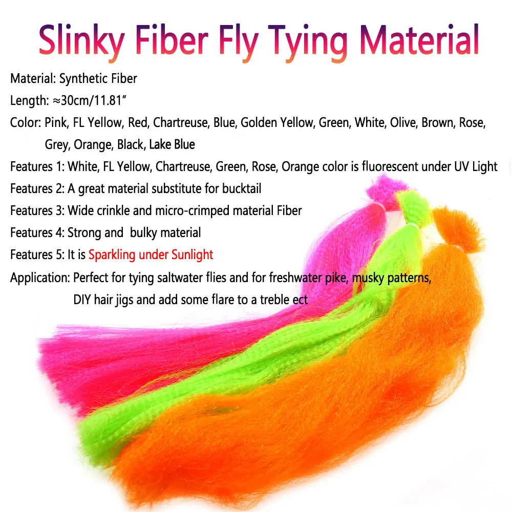 Slinky Fiber es un excelente sustituto sintético de Bucktail, con solo las arrugas del tamaño correcto para un cuerpo voluminoso pero liviano.Slinky Fiber ofrece un toque adicional de realismo que seguramente hará que su creación personalizada destaque en el agua.