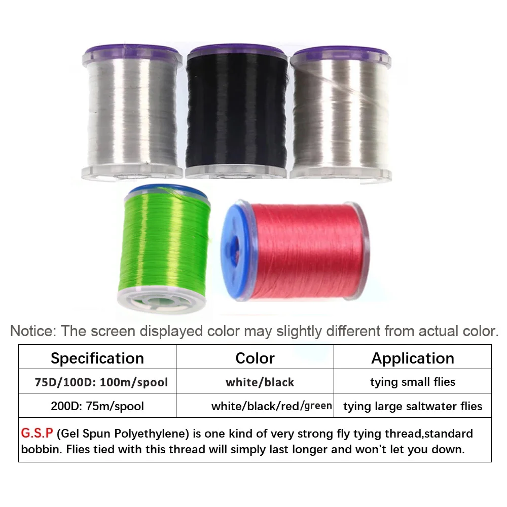 G.S.P (polietileno hilado en gel) es un tipo de hilo de atado de moscas muy fuerte, bobina estándar, alta calidad. Las moscas atadas con este hilo durarán más tiempo y no te defraudarán.