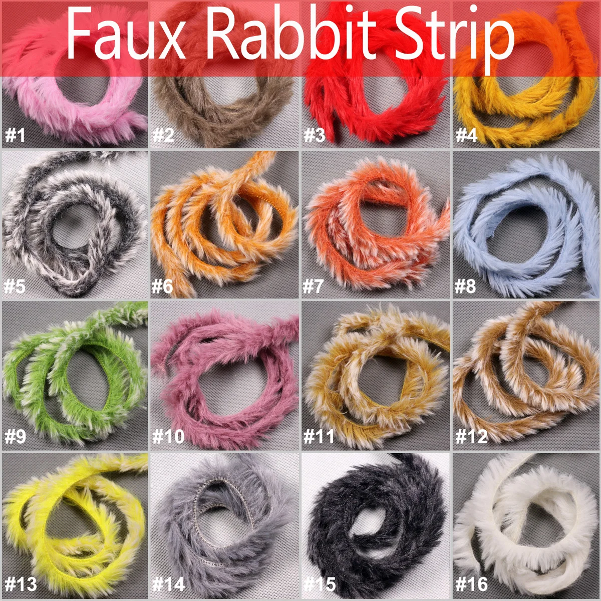 Bimoo 2pcs3mm Wide Faux Rabbit Strips Zonker Fly Tying Materials Synthetic Fiber Bunny Streamer Trout Saltwater Fishing Lures