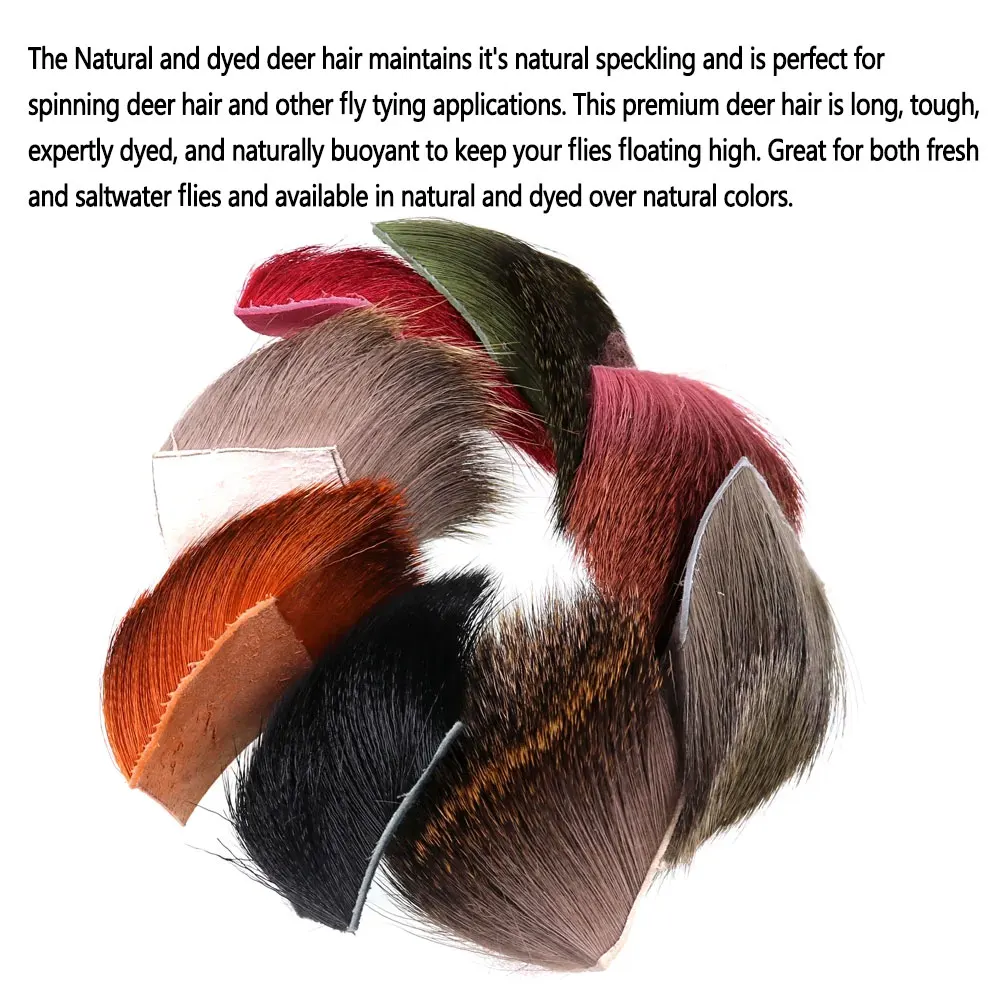 El pelo de ciervo natural y teñido mantiene su moteado natural y es perfecto para hacer girar el pelo de ciervo y otras aplicaciones de atado de moscas. Este pelo de venado de primera calidad es largo, resistente, teñido por expertos y naturalmente flotante para mantener sus moscas flotando alto. Ideal para moscas de agua dulce y salada y disponible en colores naturales y teñidos sobre naturales.